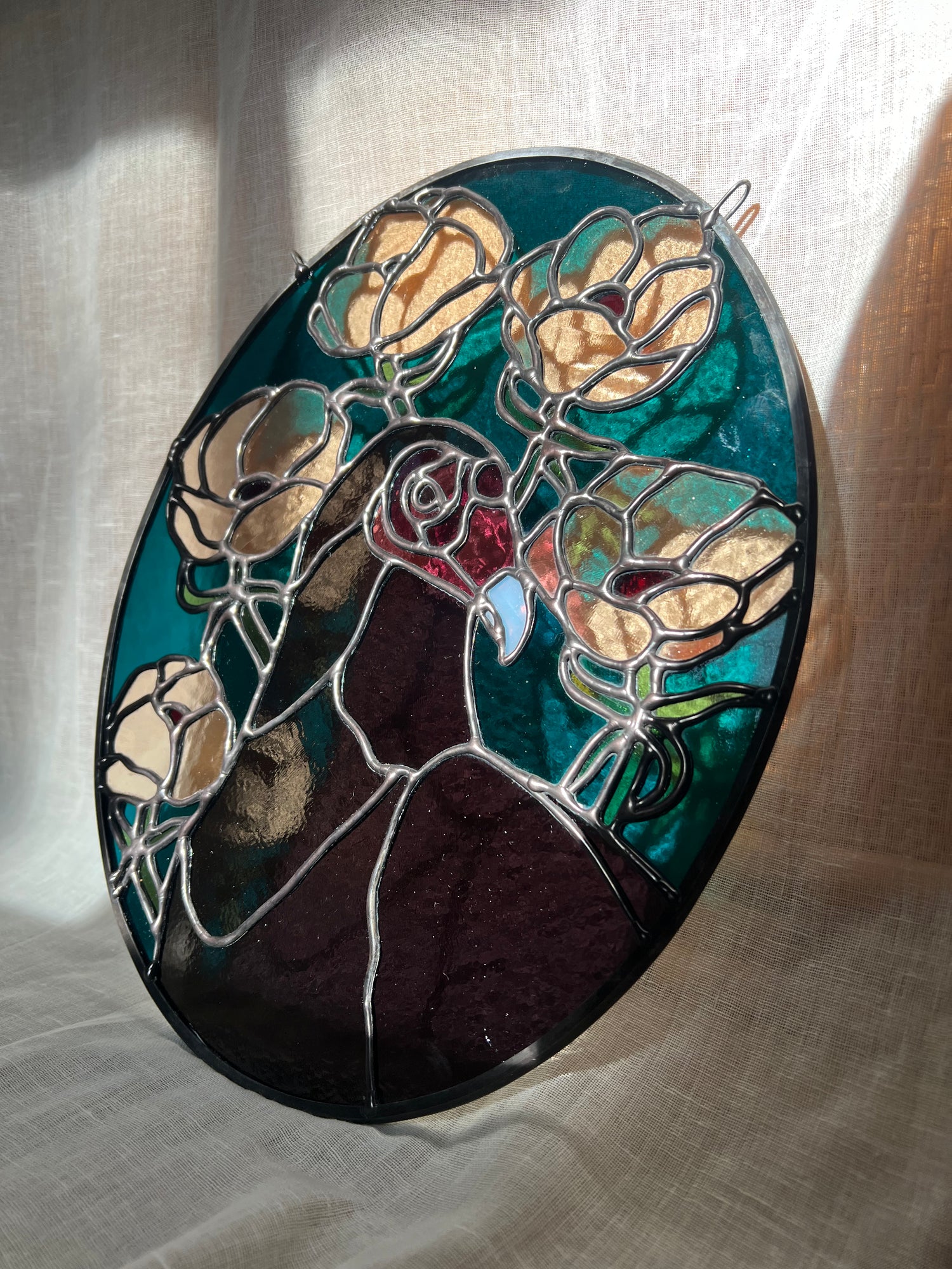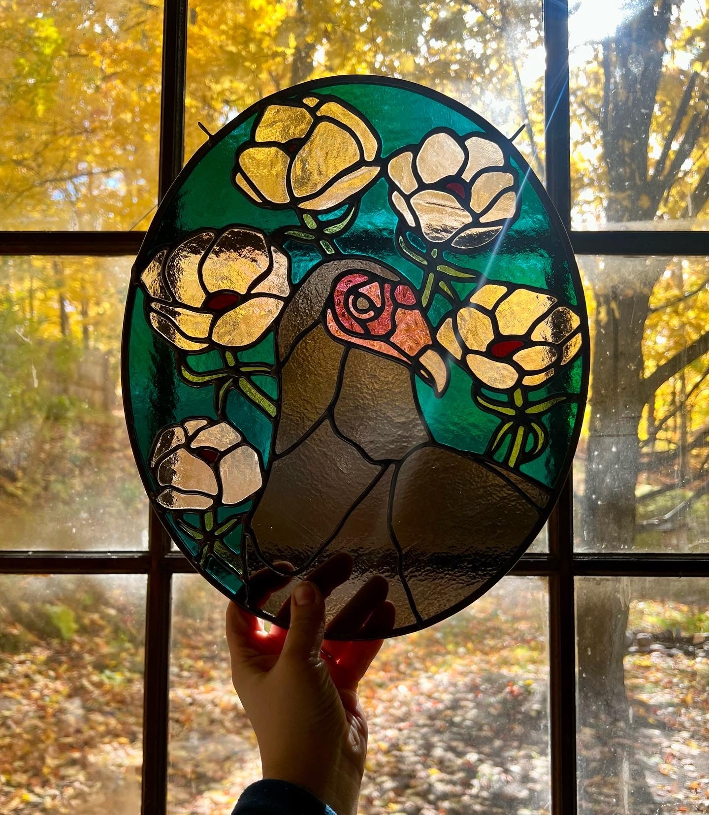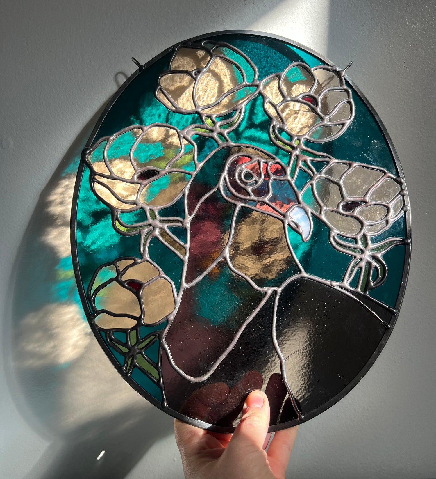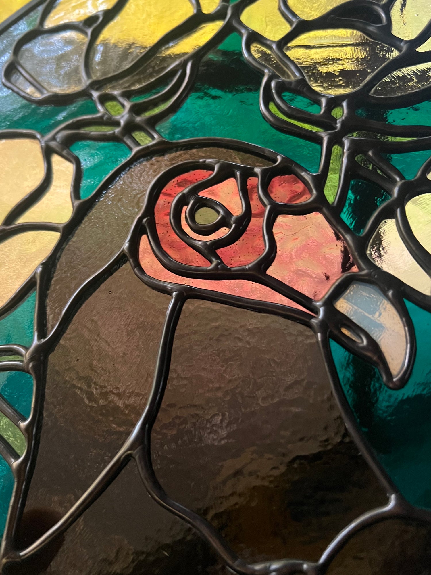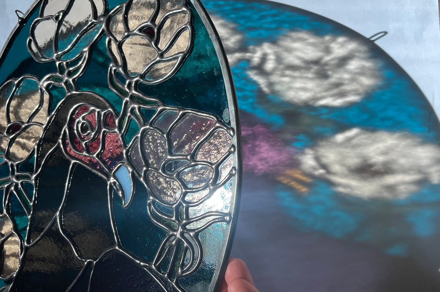 handmade using the Tiffany method of stained glass- an absolute labor of love on this one