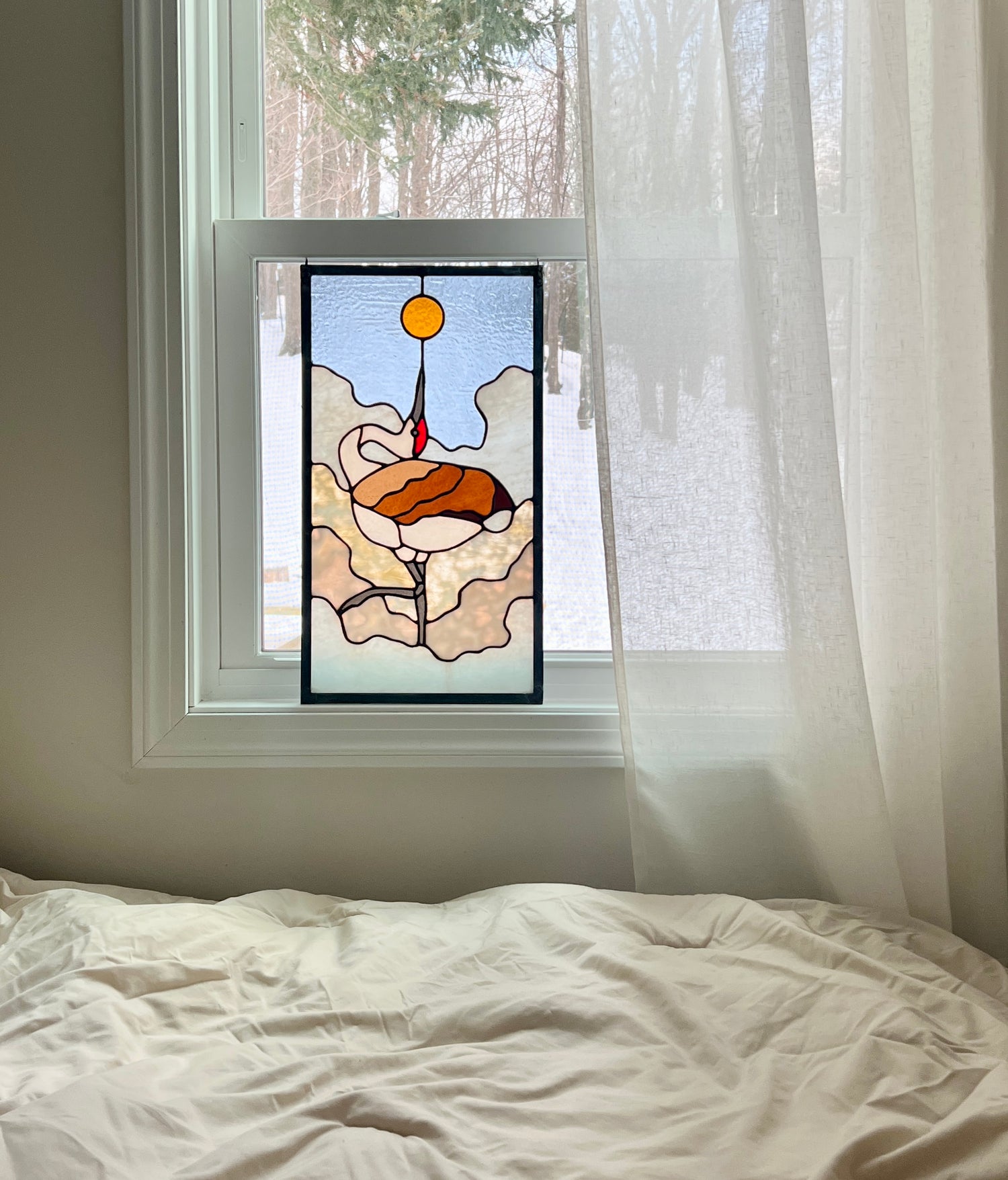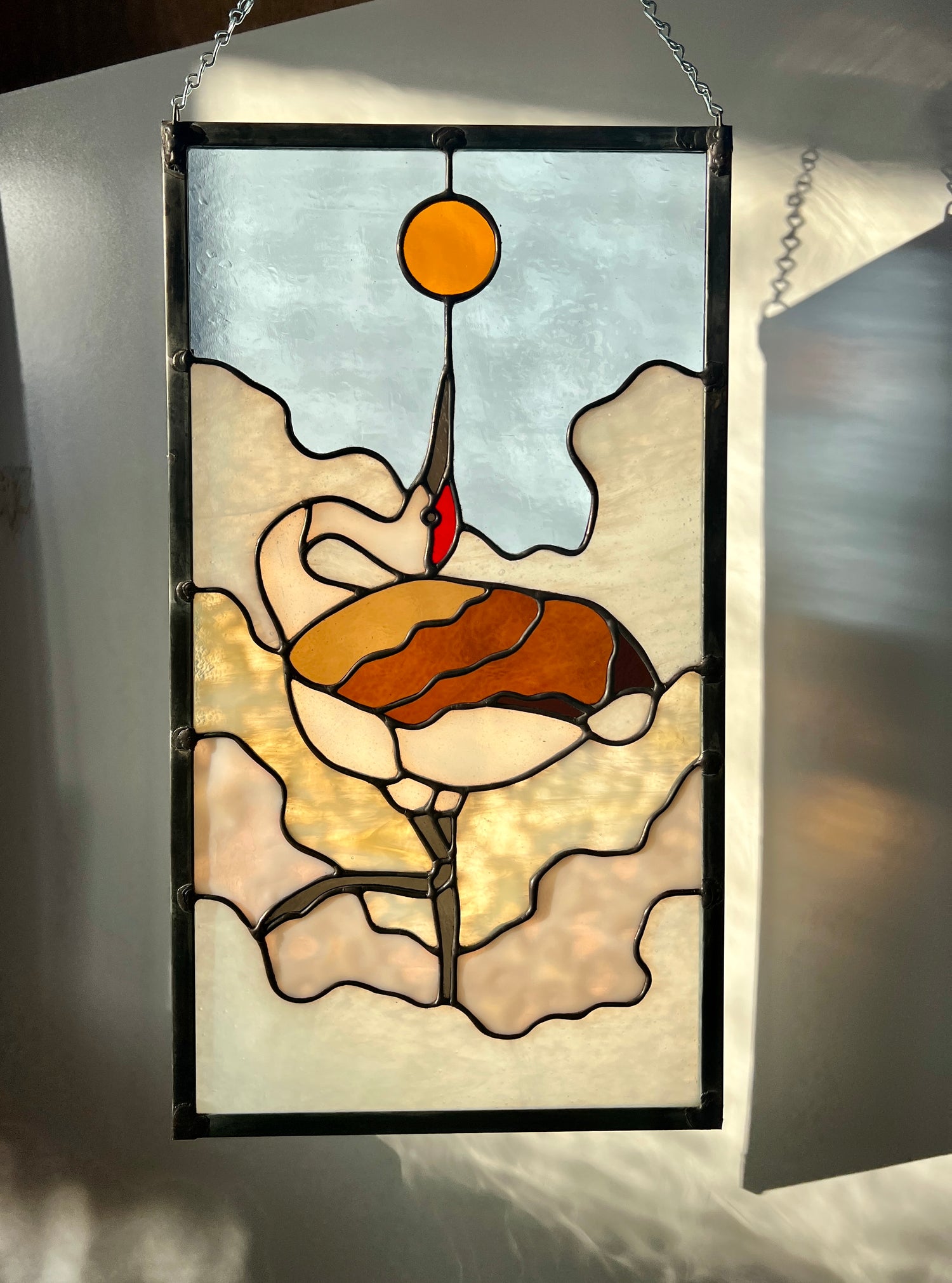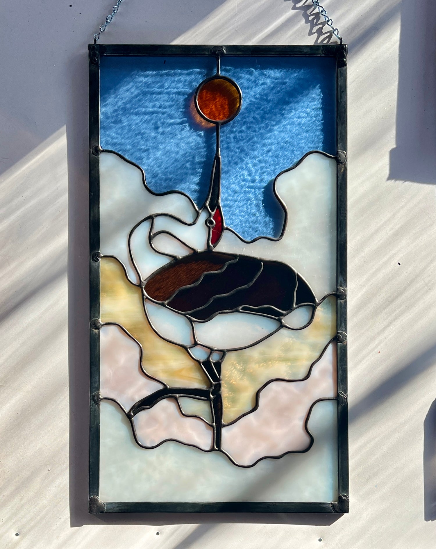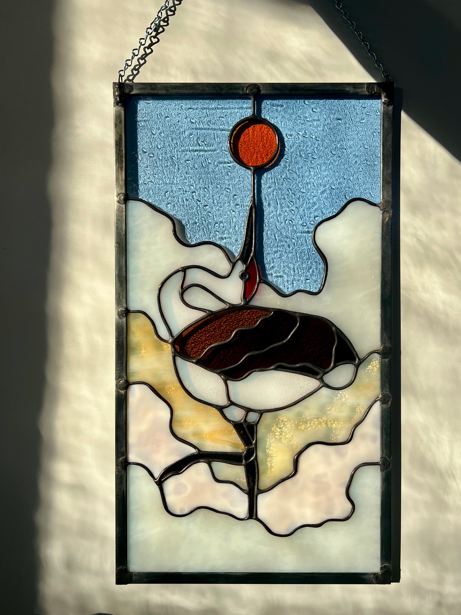 stained glass / lead tin solder / zinc came / black patina / zinc chain