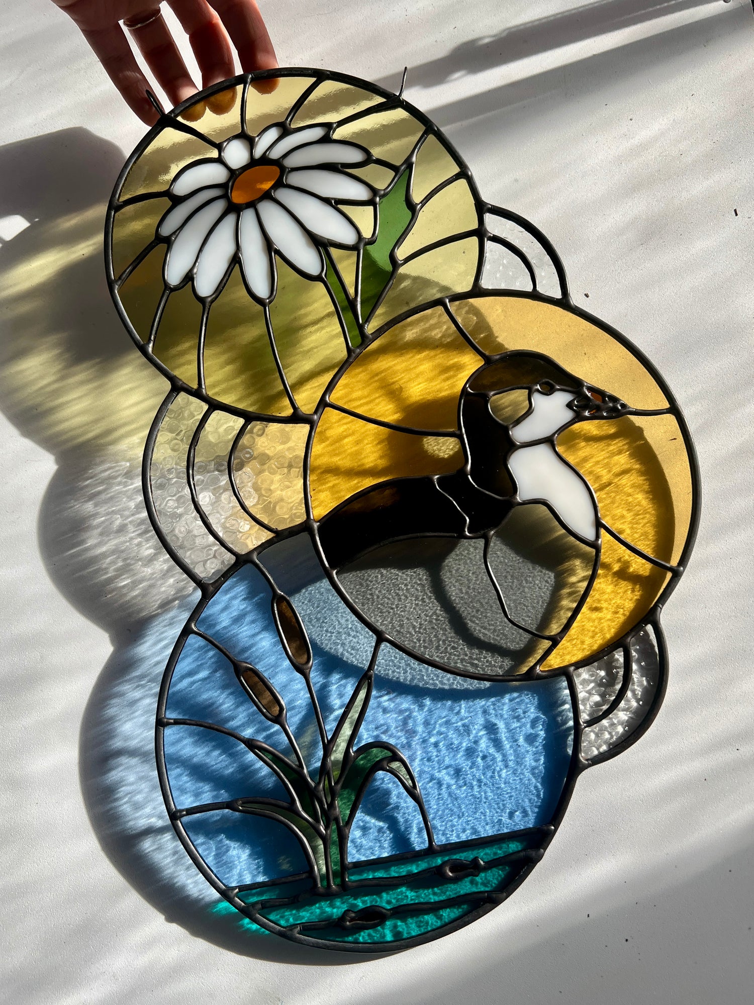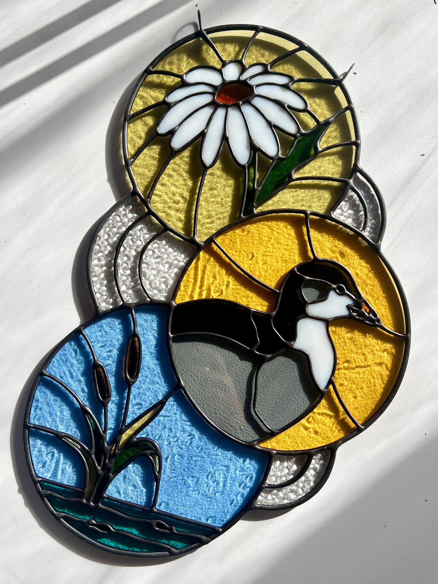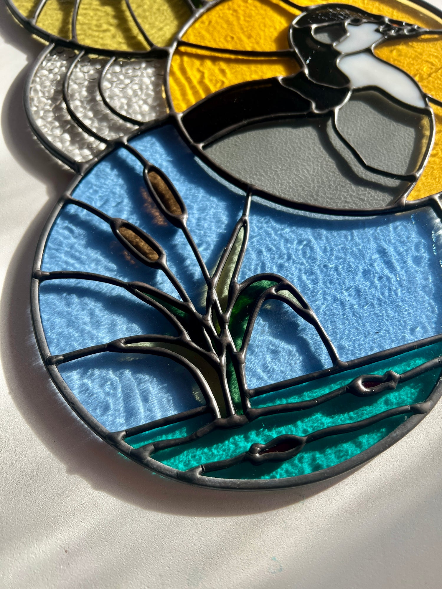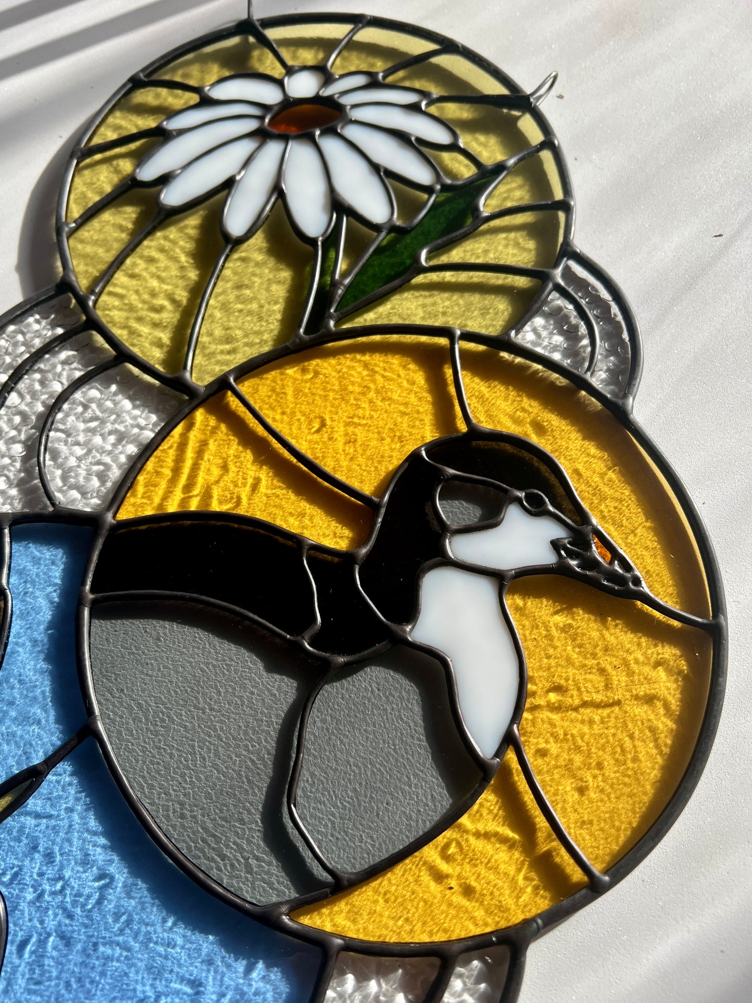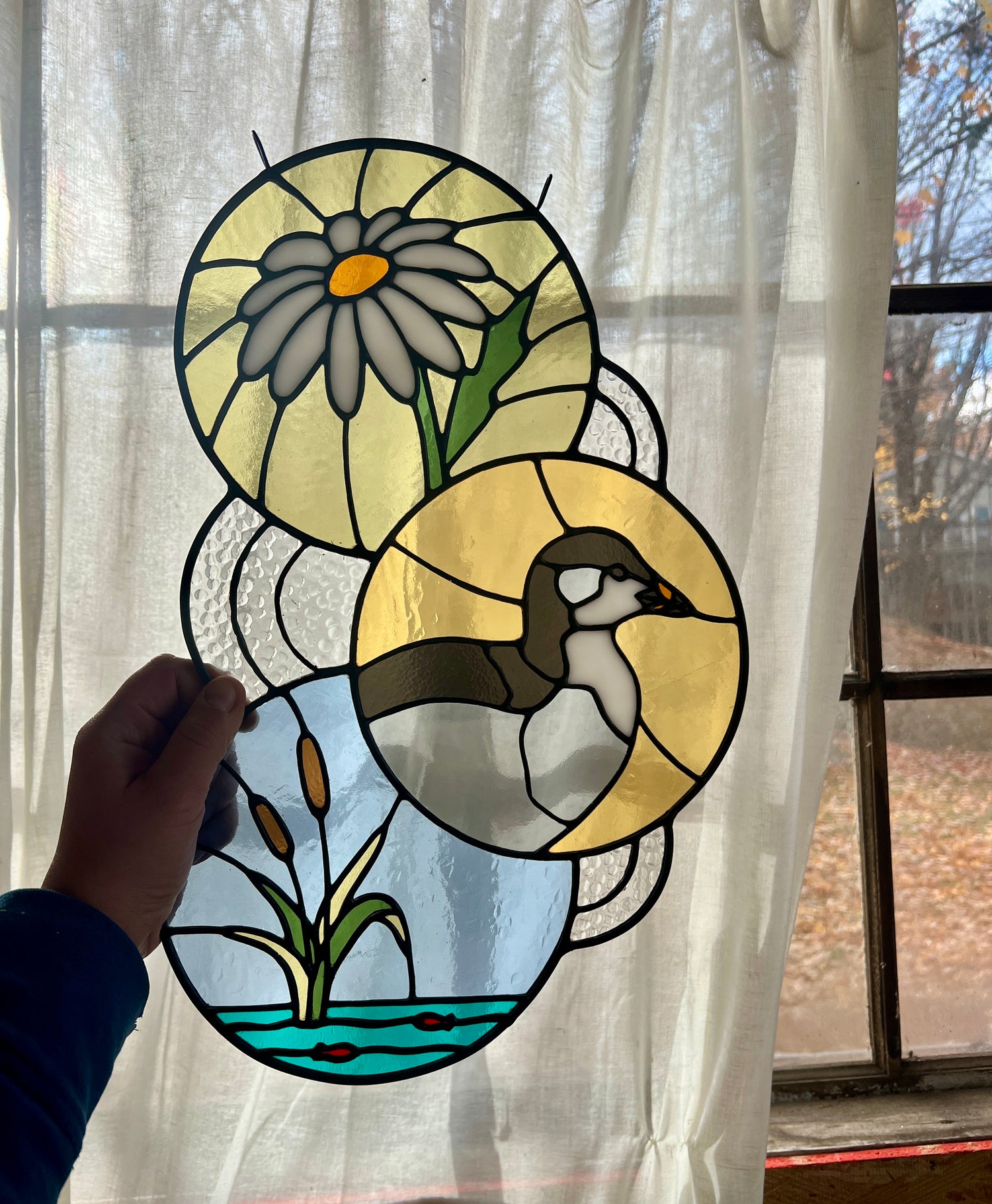 stained glass / lead tin solder / black patina / lead came / zinc chain