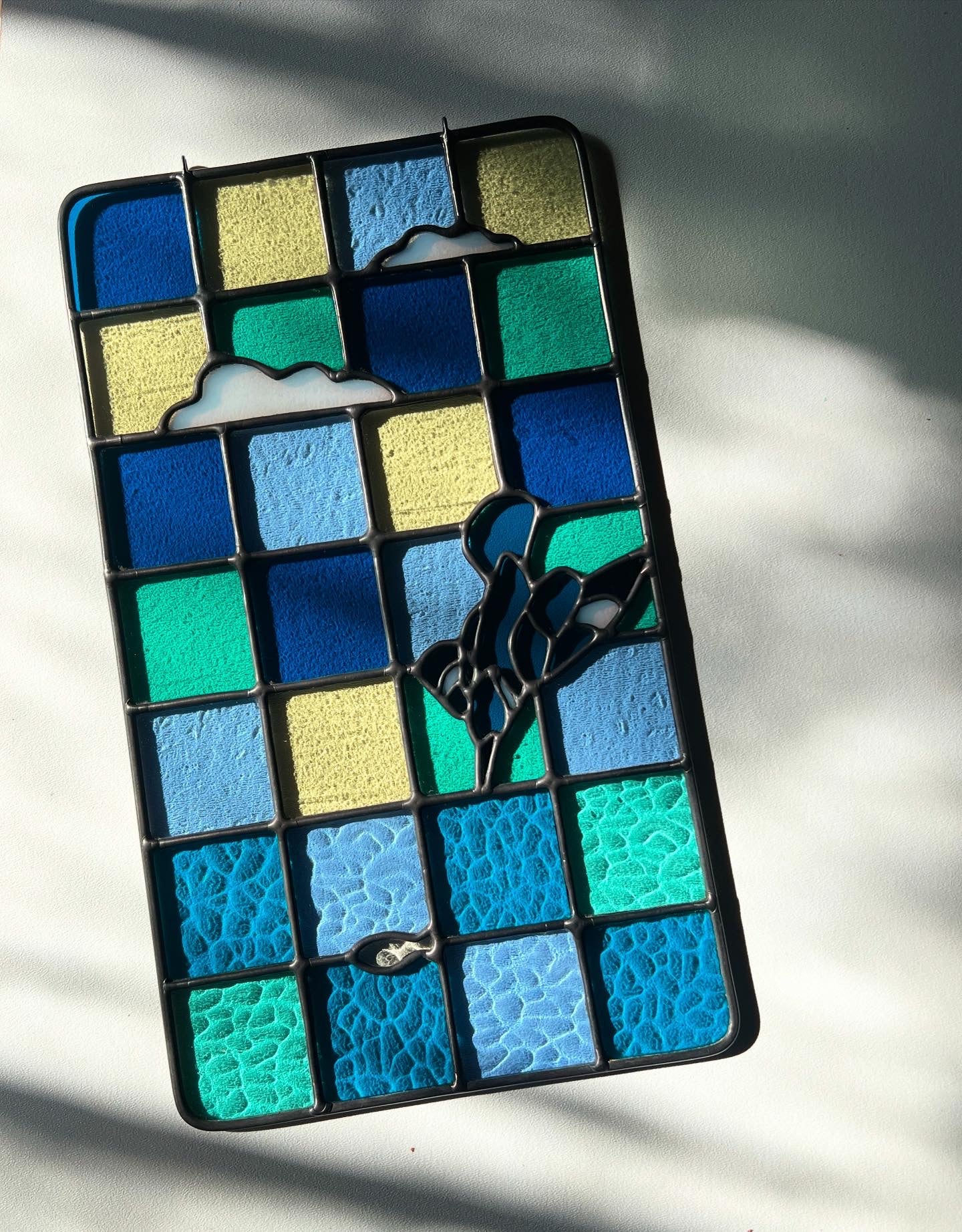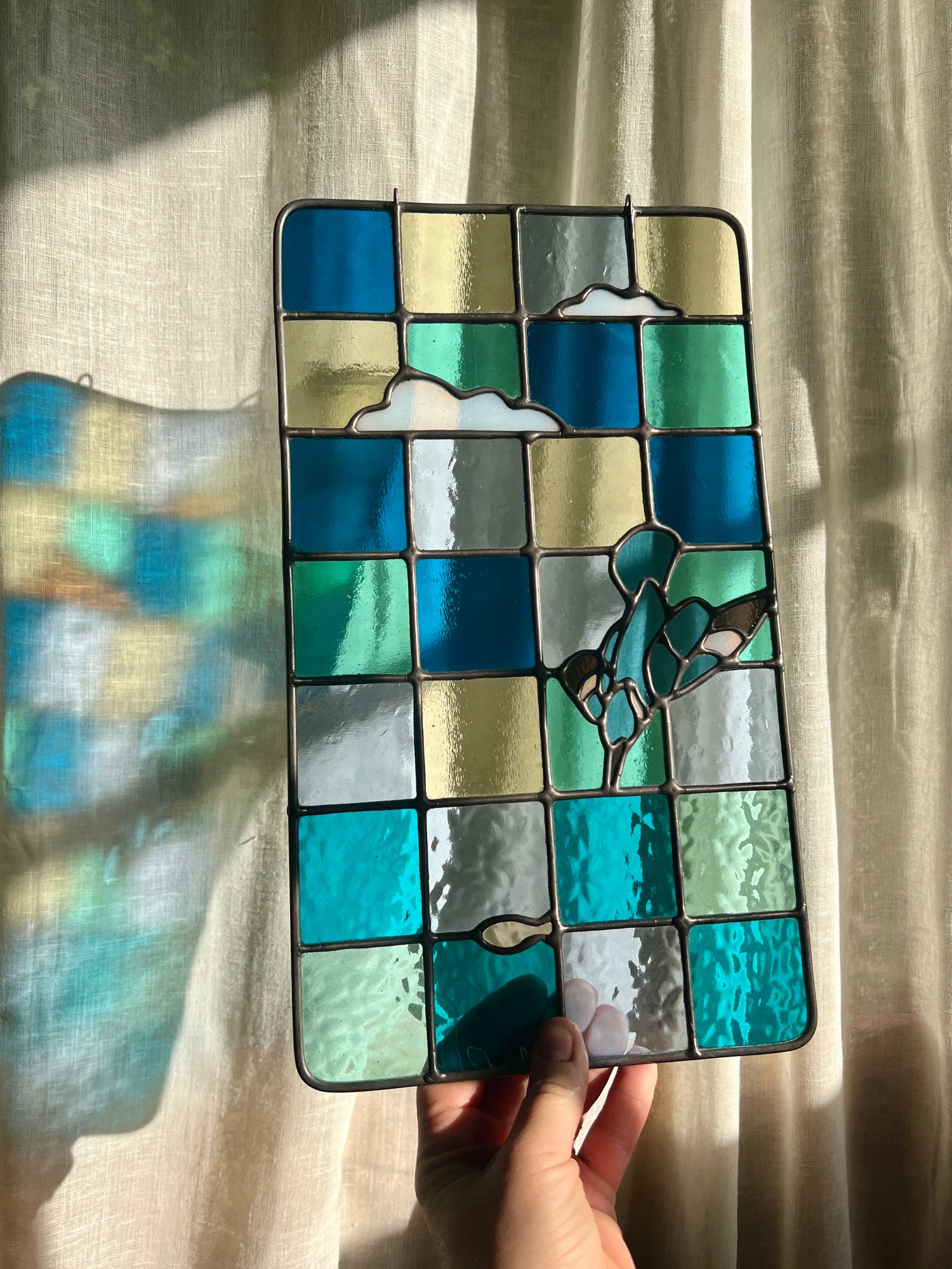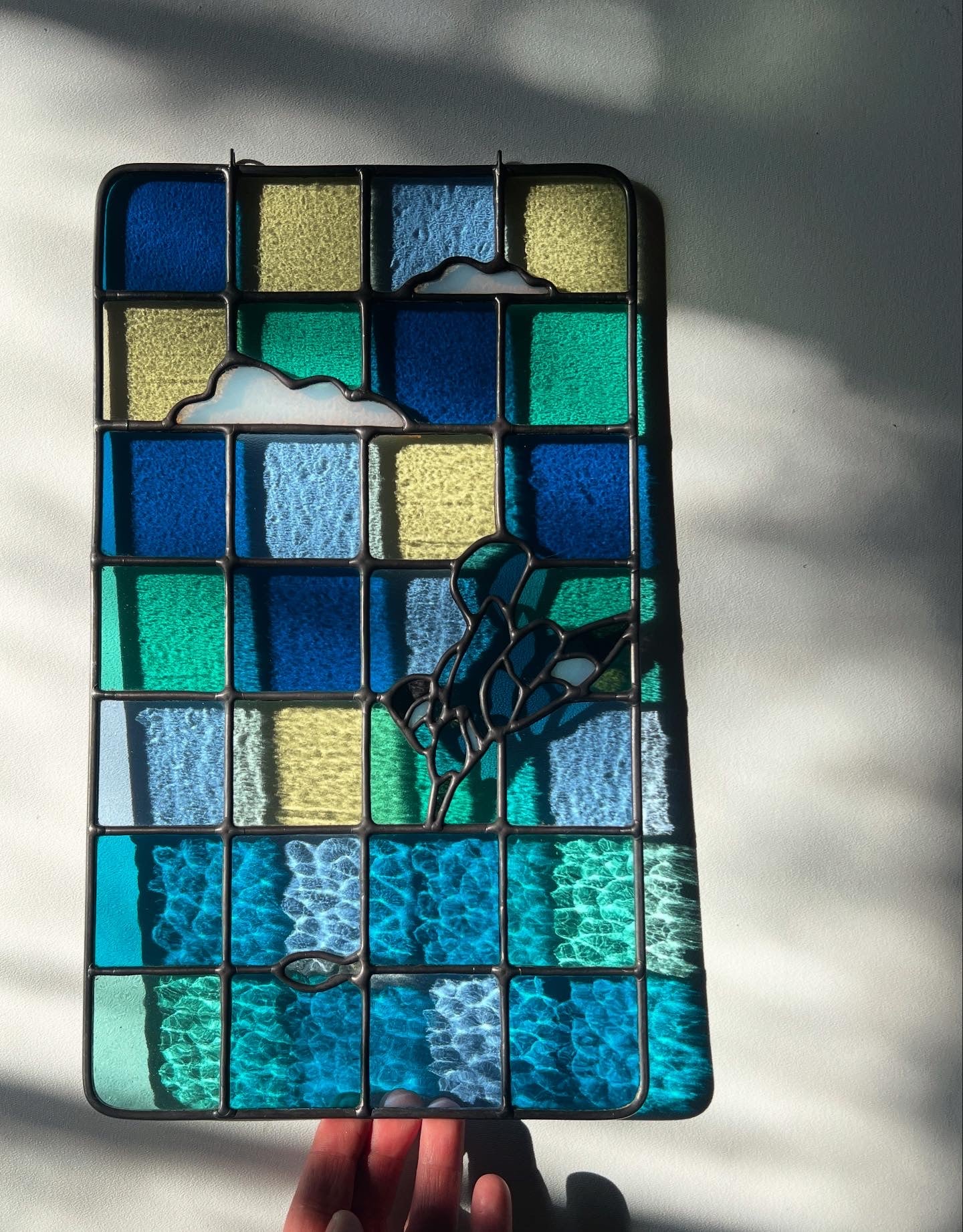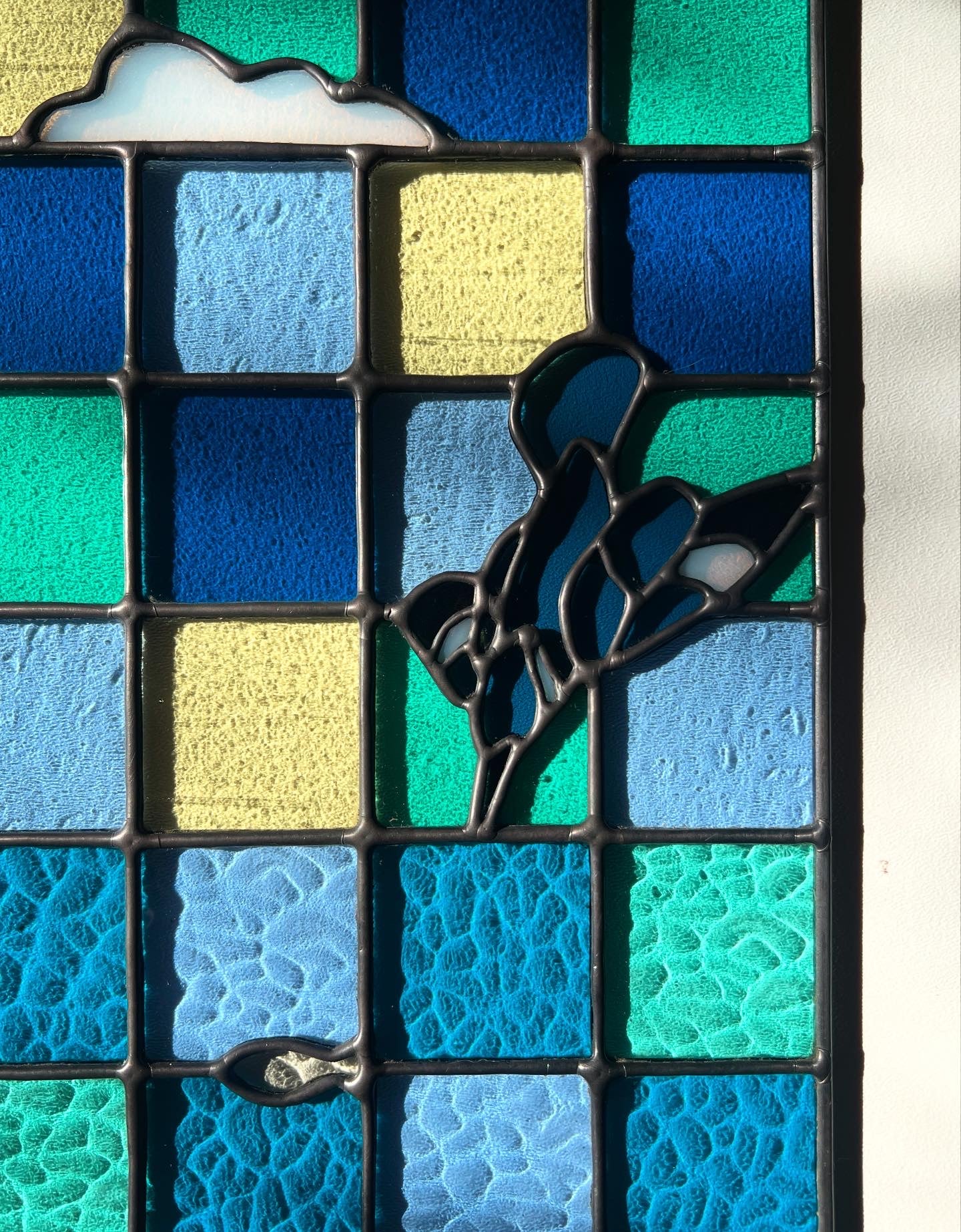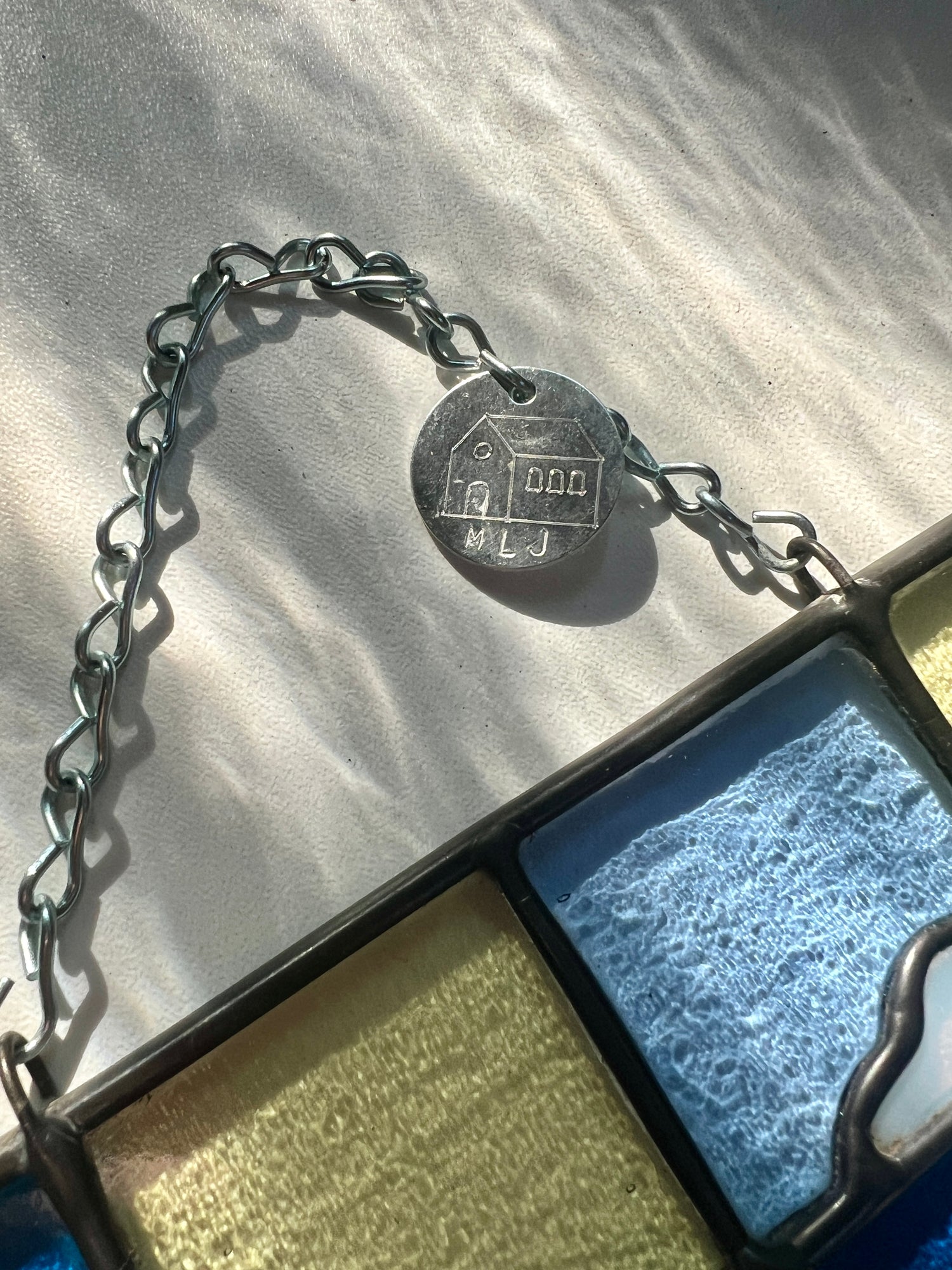stained glass / lead tin solder / lead came / black patina / zinc chain