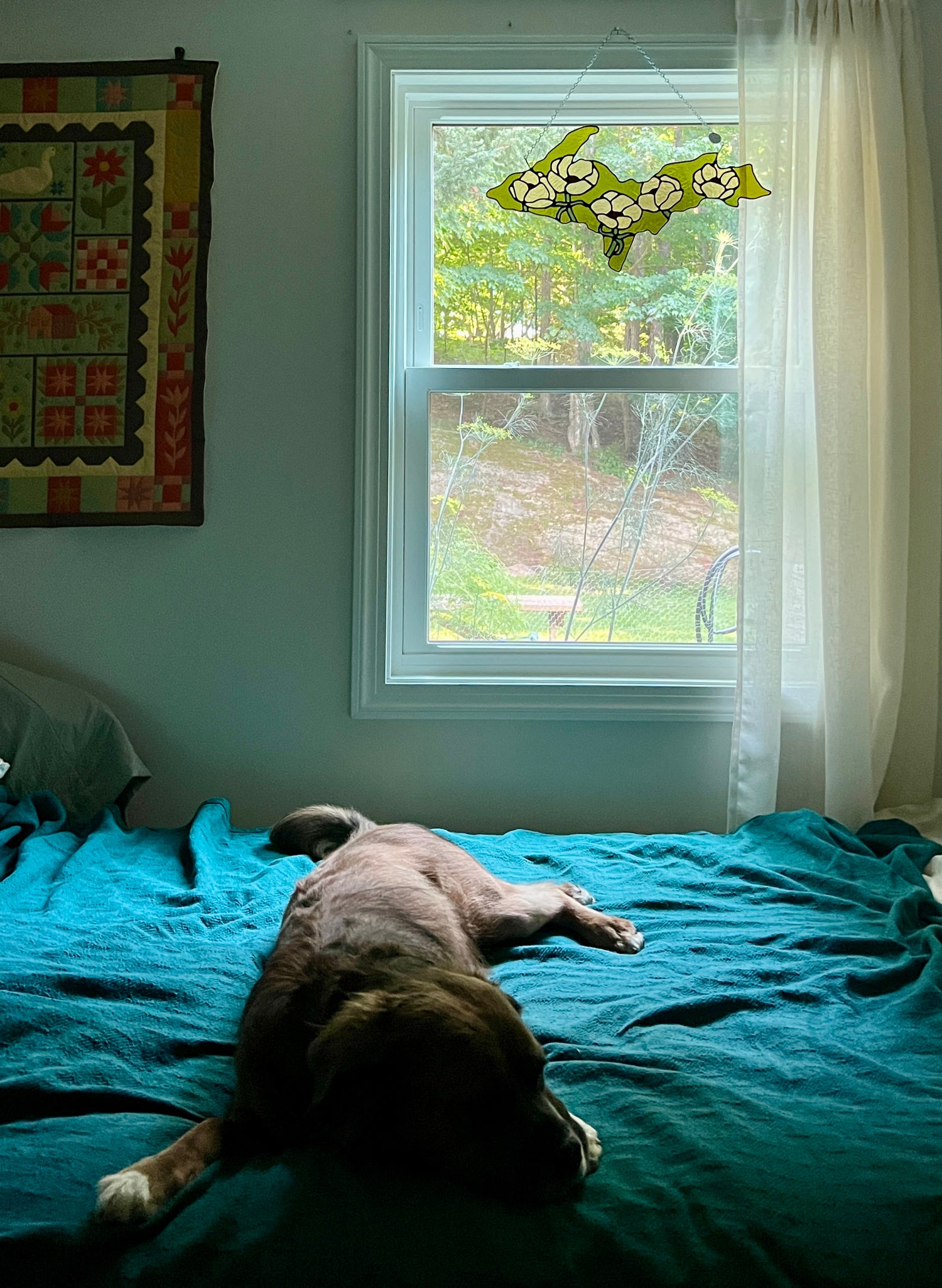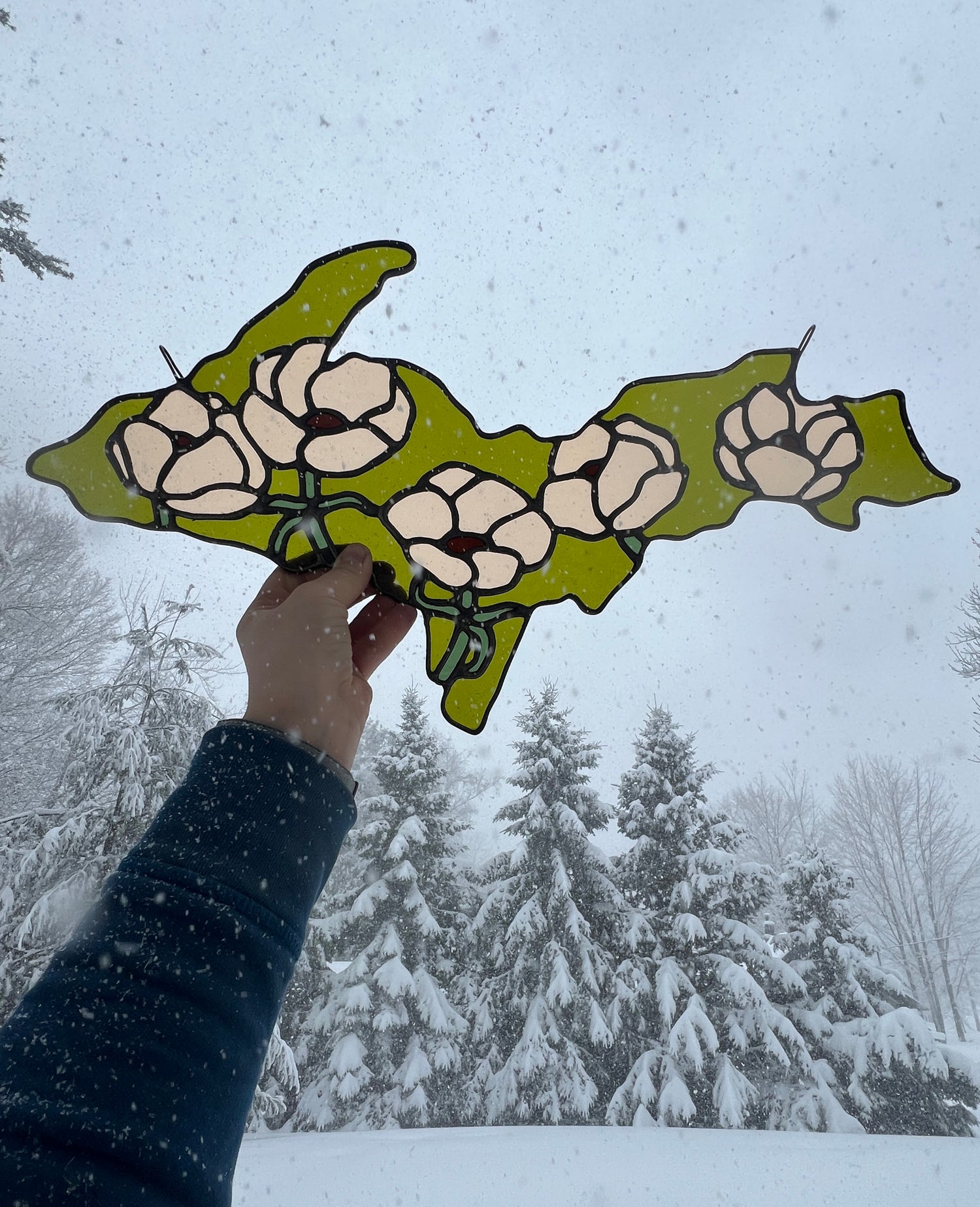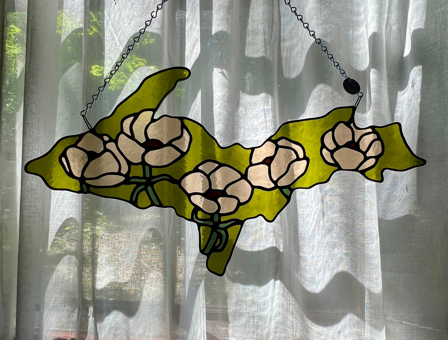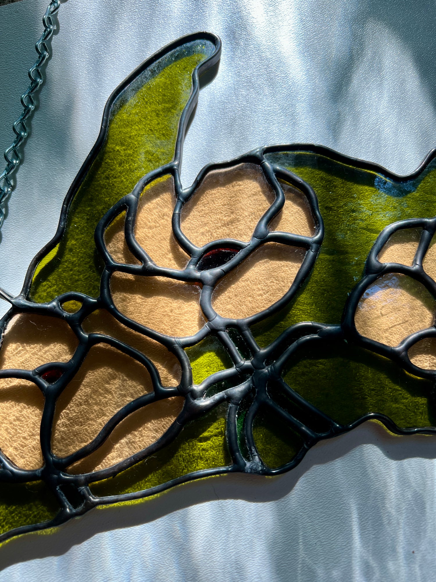 stained glass / lead tin solder / lead came / black patina / zinc chain