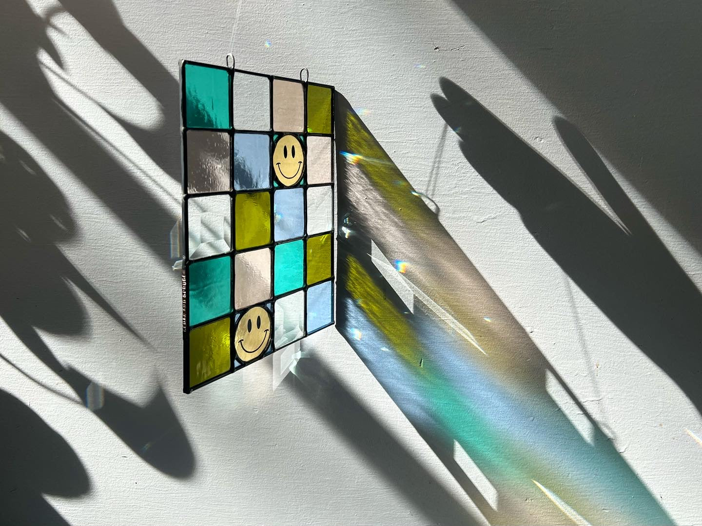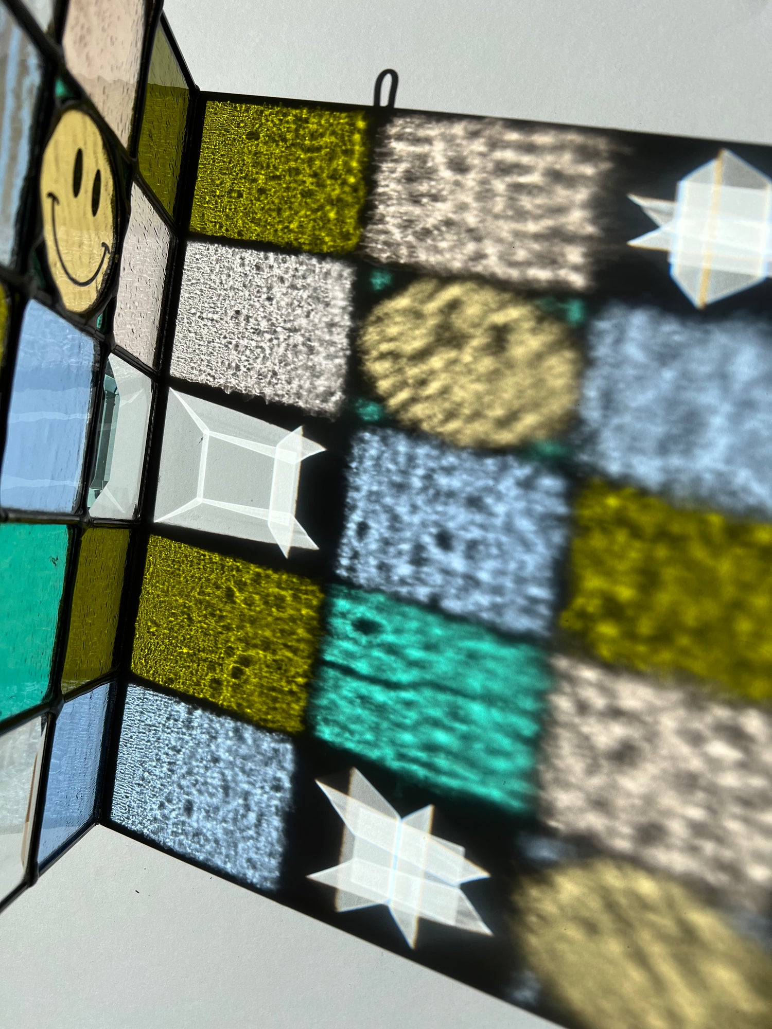vinyl details / lead-tin solder / zinc frame / black patina / clear beveled glass