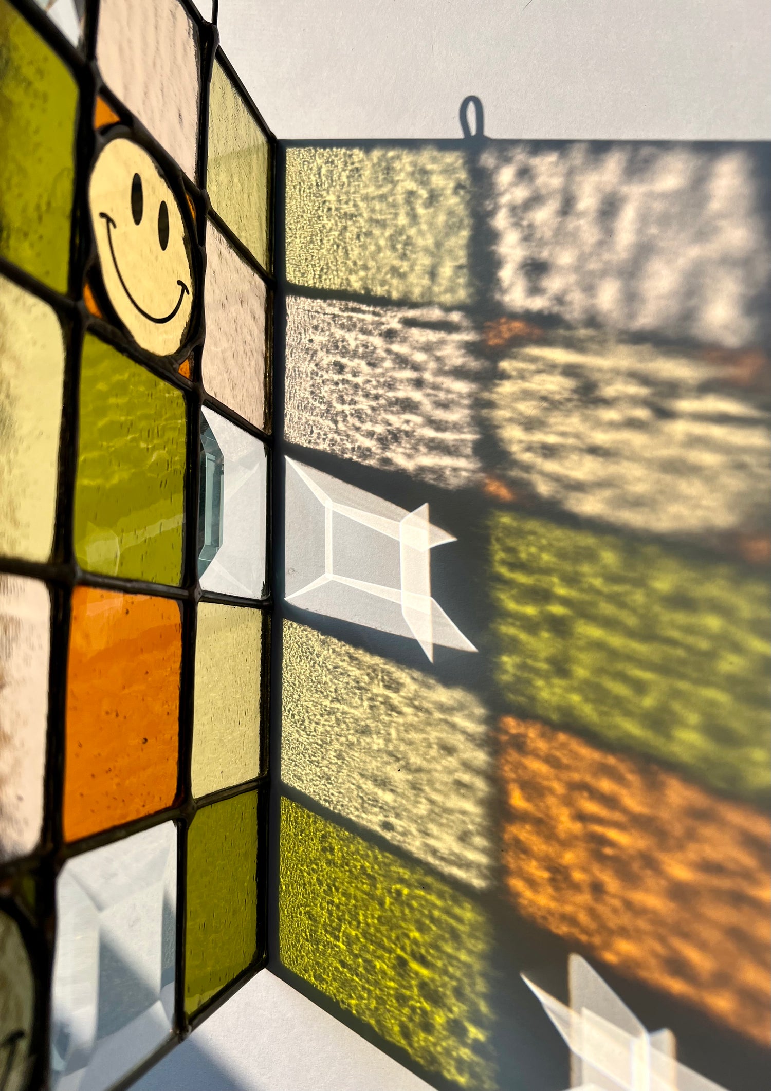 vinyl details / lead-tin solder / zinc frame / black patina / clear beveled glass