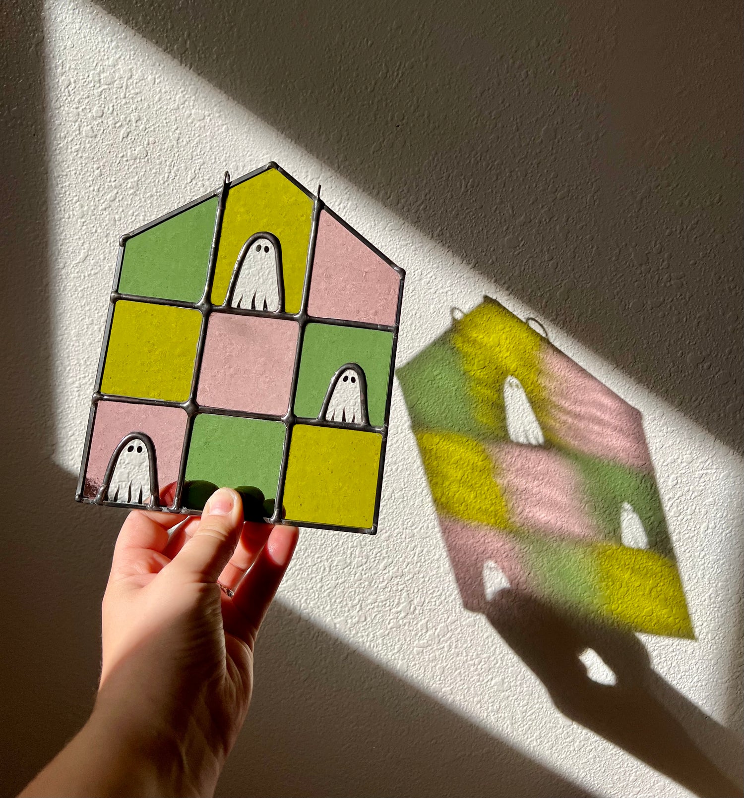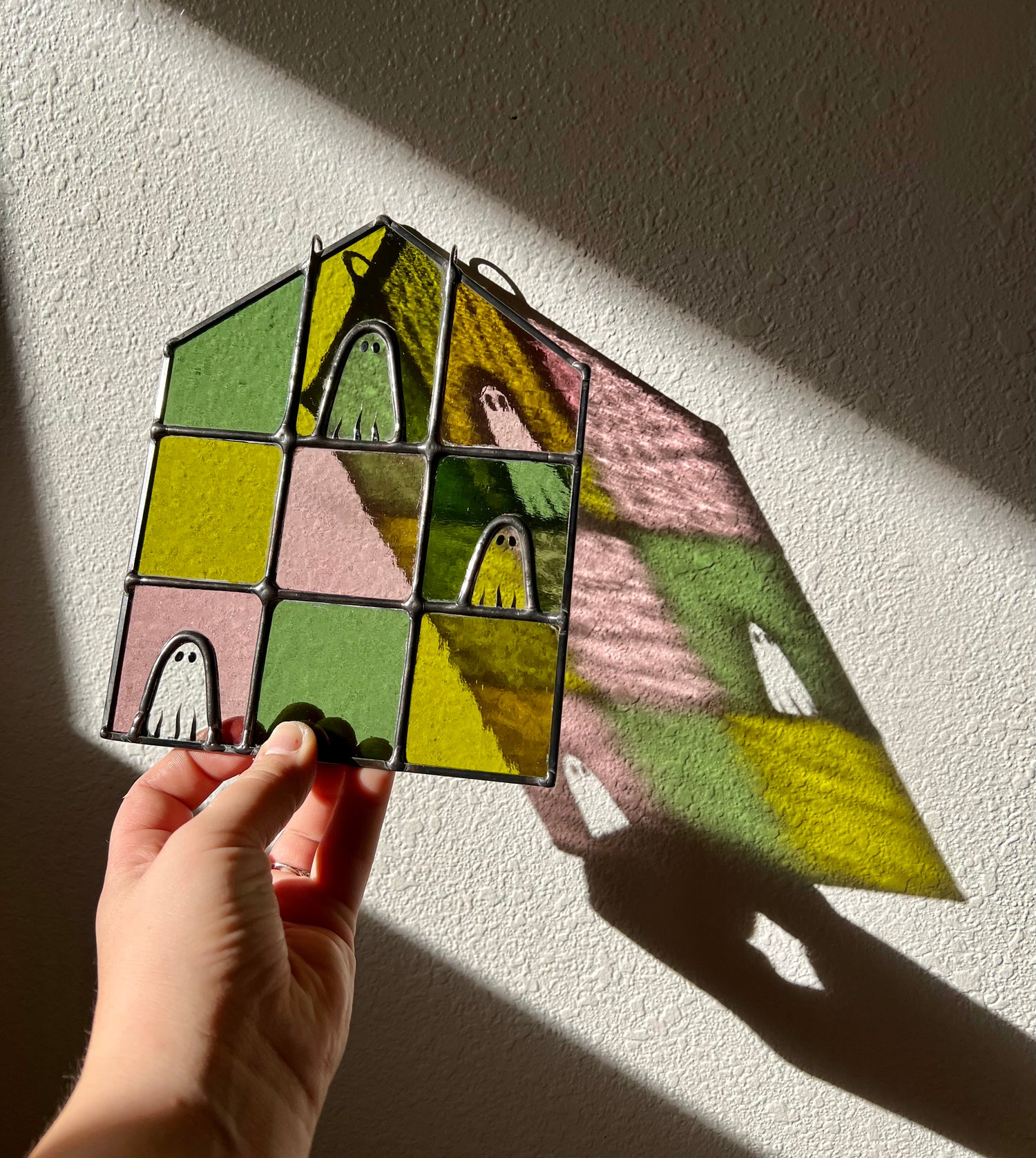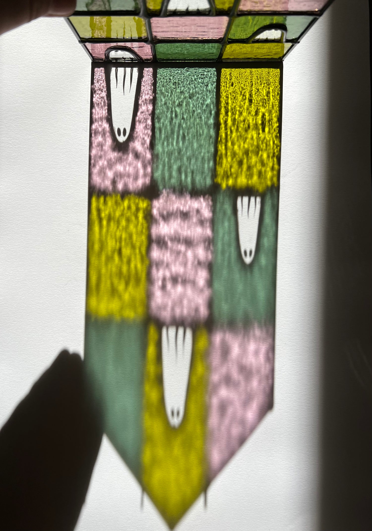 stained glass / lead-tin solder / hand painted details / black patina / zinc frame