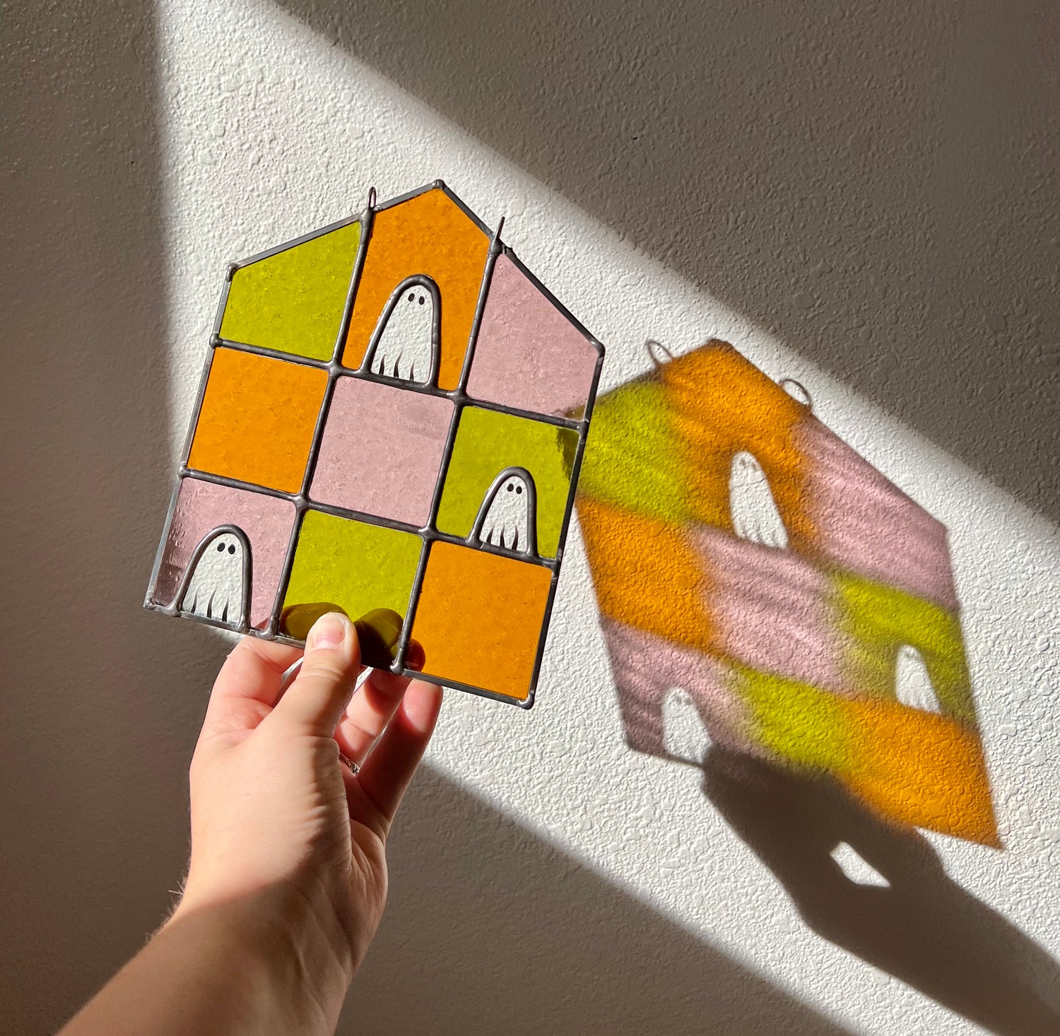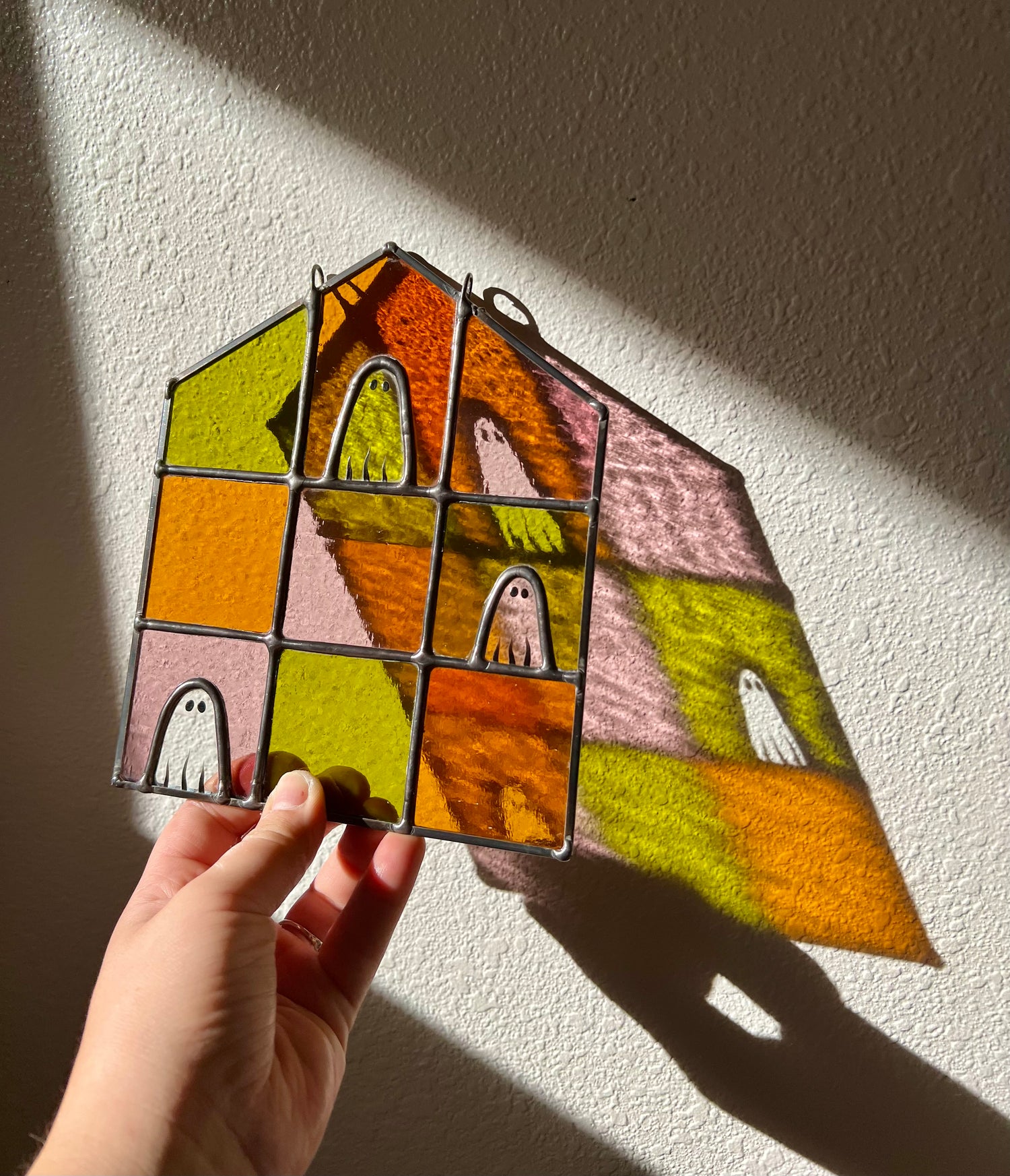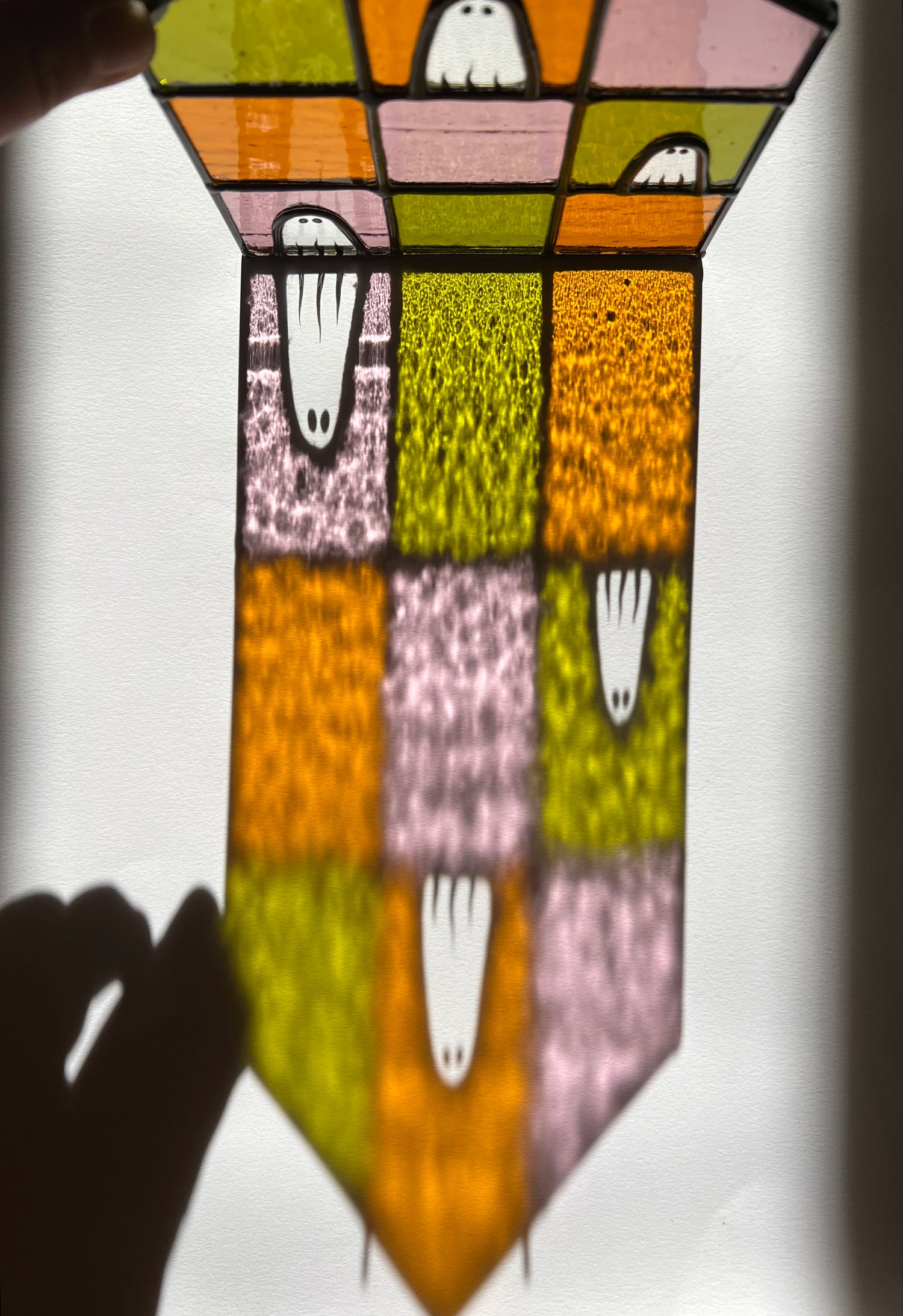 stained glass / lead-tin solder / hand painted details / black patina / zinc frame