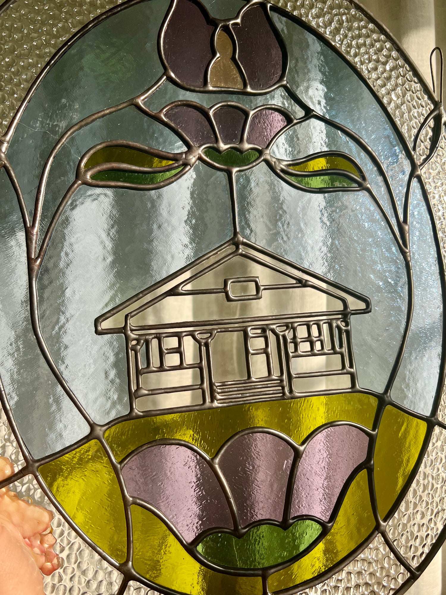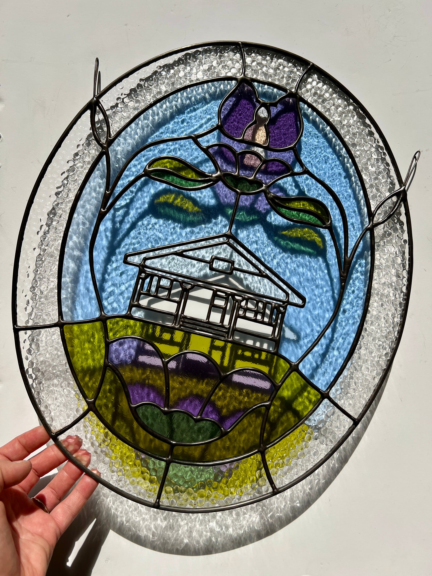 stained glass / lead-tin solder / lead came / black patina / zinc chain