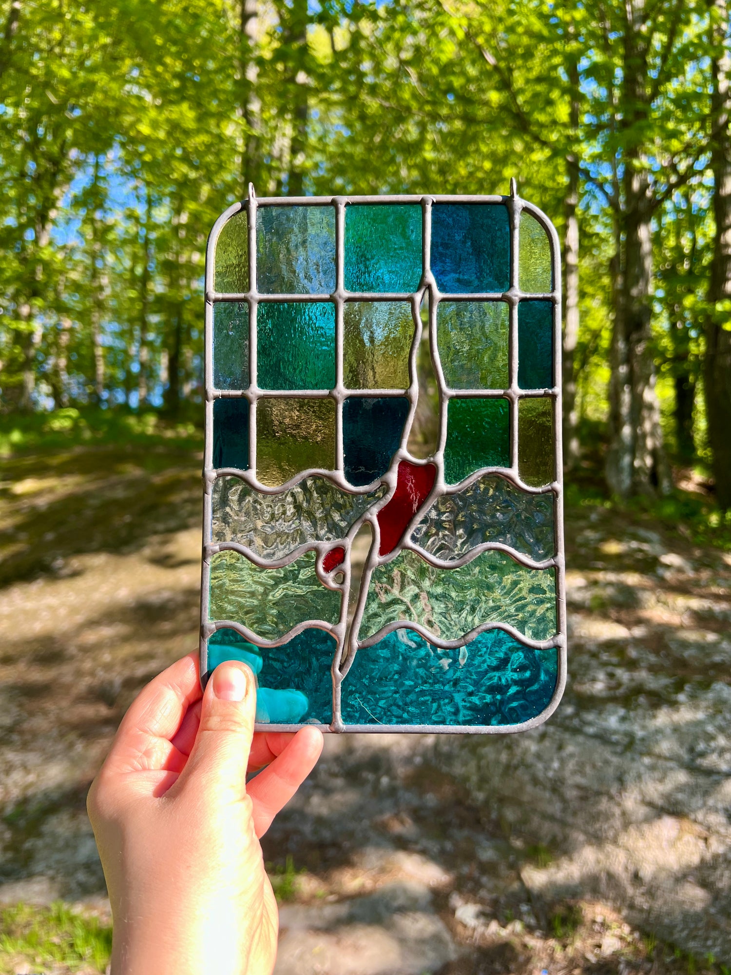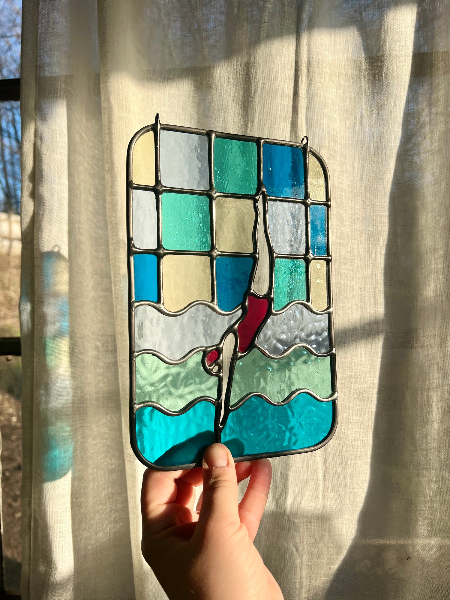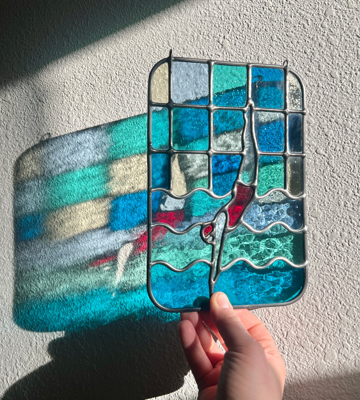stained glass / lead tin solder / black patina / lead came / zinc chain