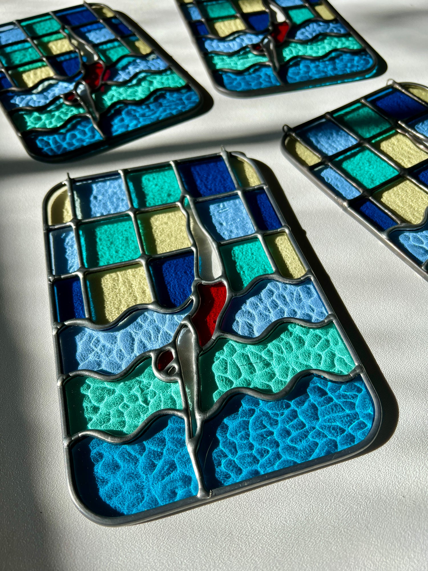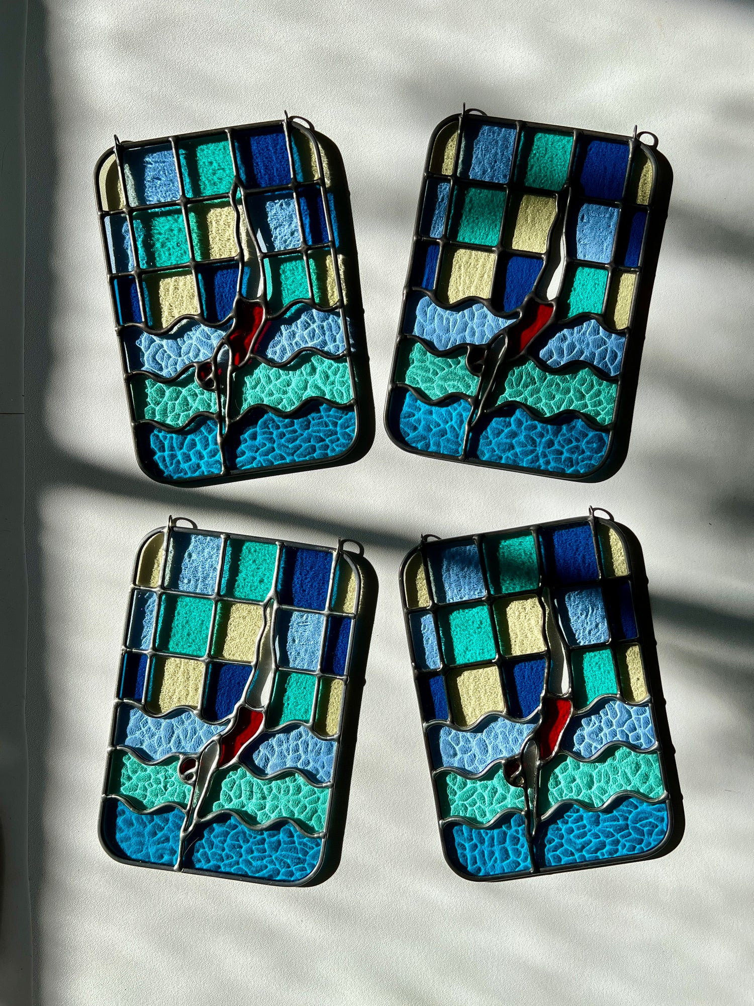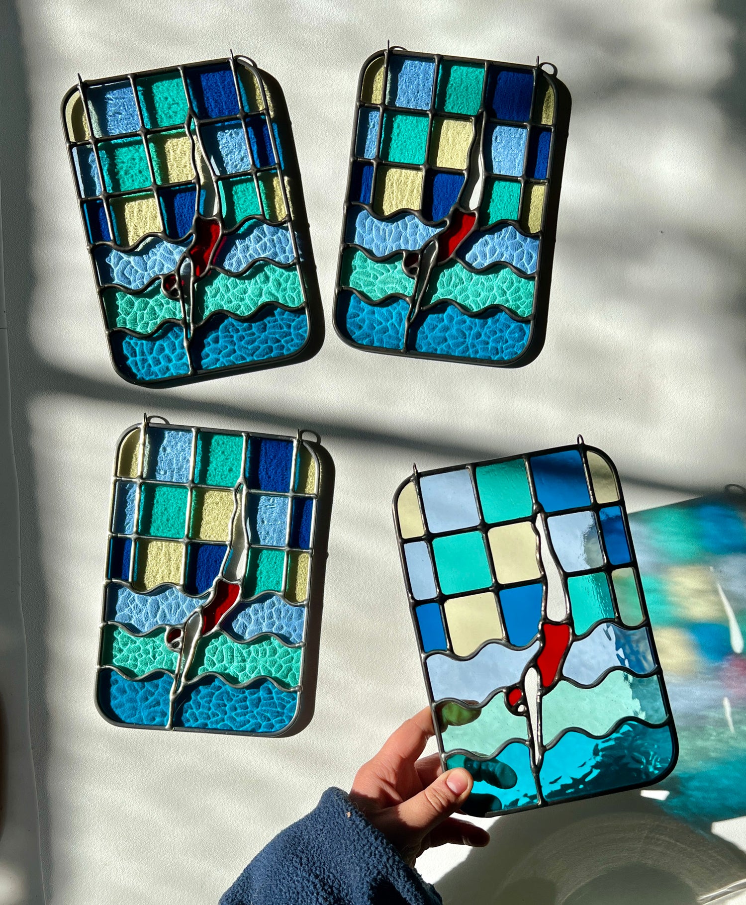 stained glass / lead tin solder / black patina / lead came / zinc chain