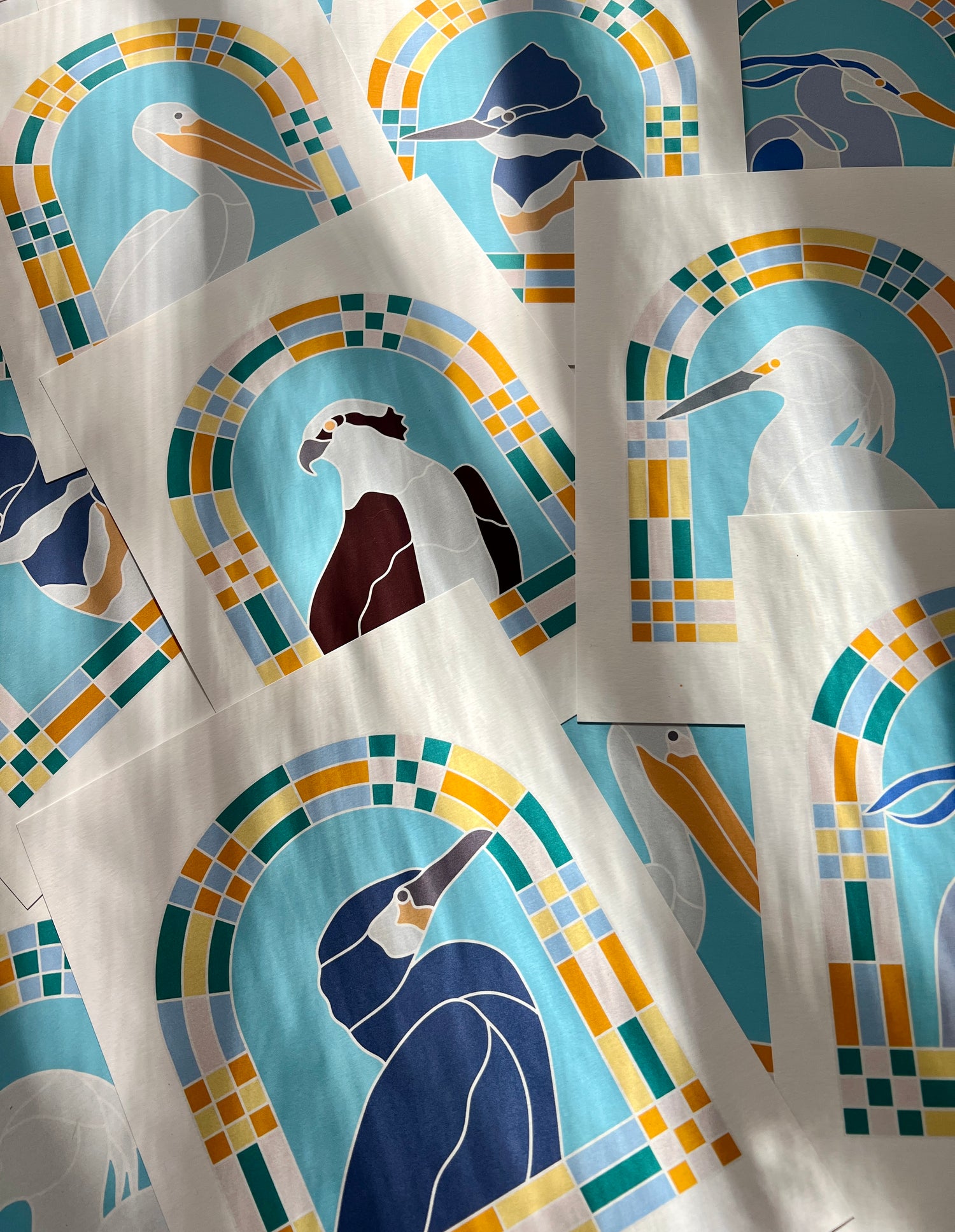 digitized renditions of my original stained glass collection Patchwork Birds (in progress)