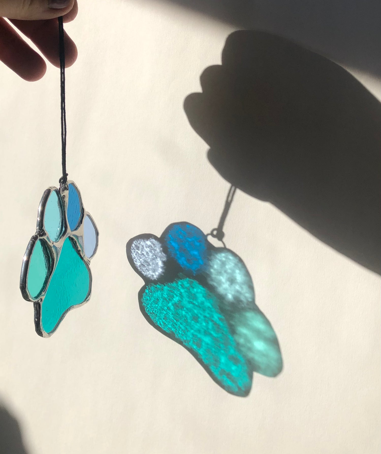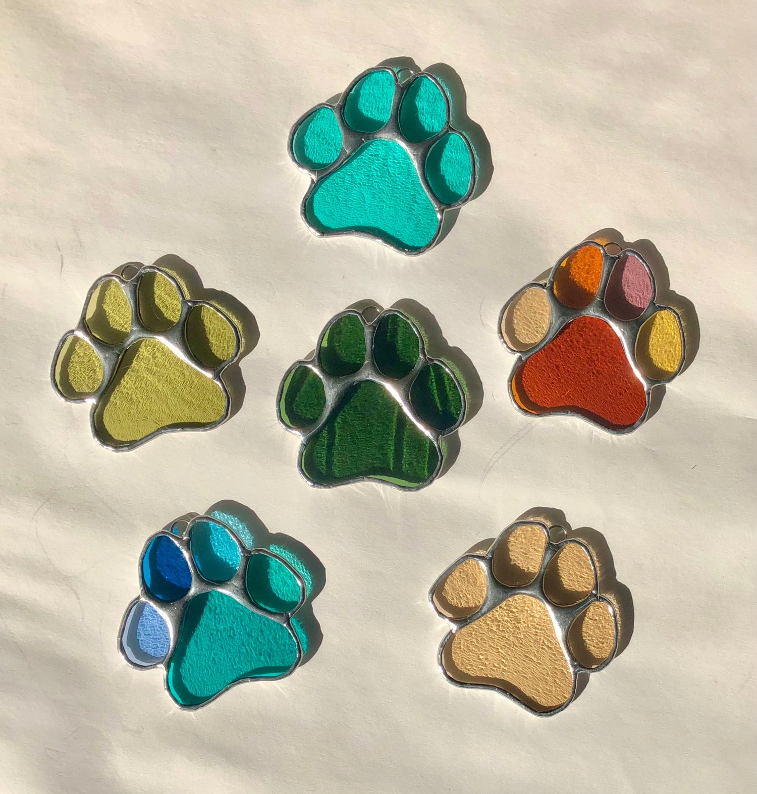 Each paw measures approximately 3" x 3" and will come with a bit of hemp cord for hanging. Please refer to the color charts in the product photos to select your color/colors.