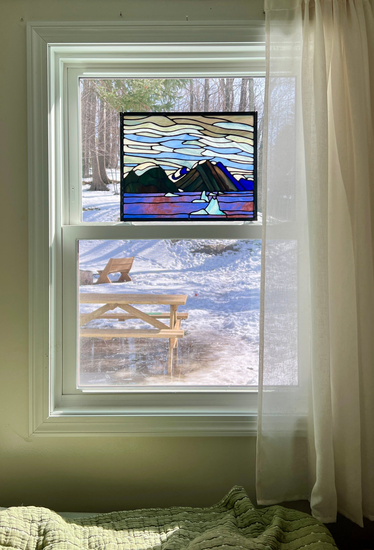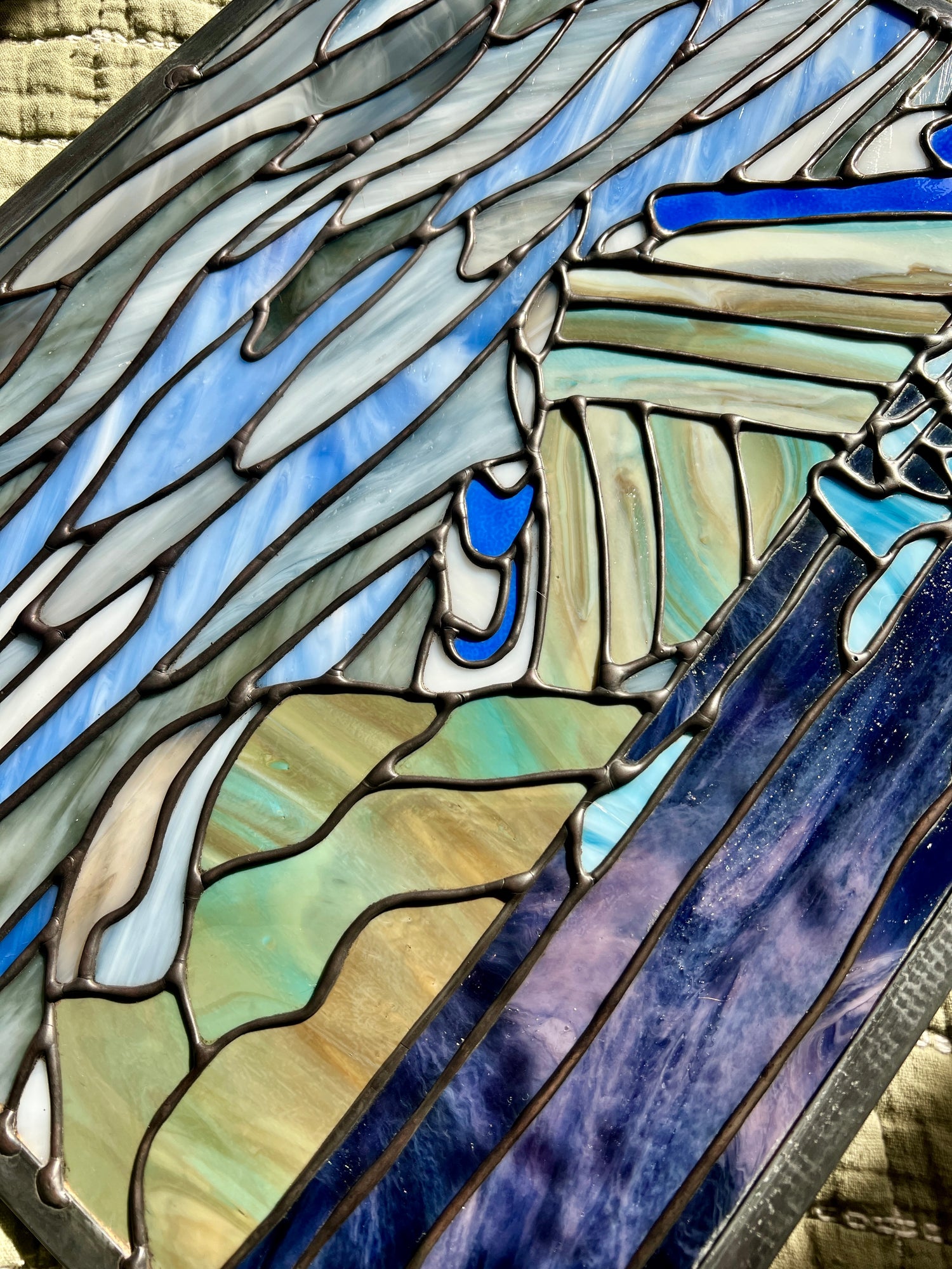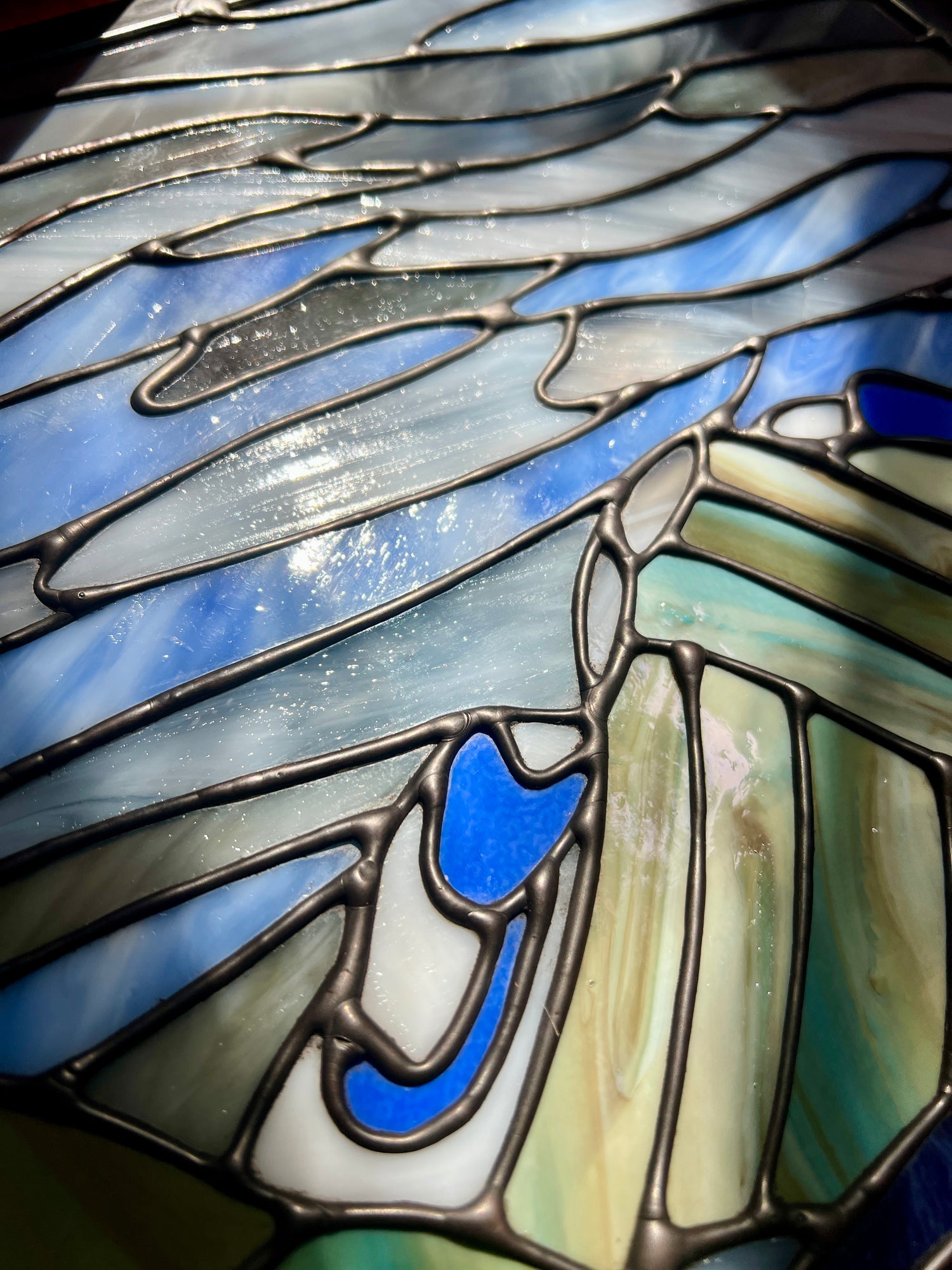 stained glass / lead tin solder / zinc came / black patina / zinc chain