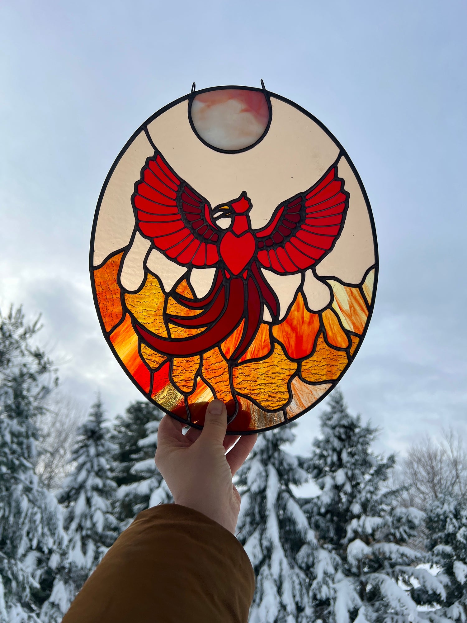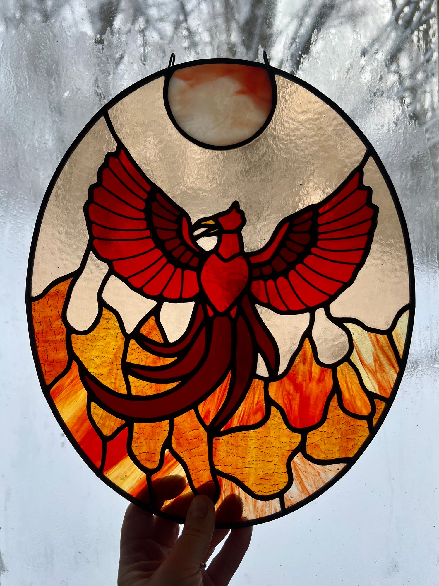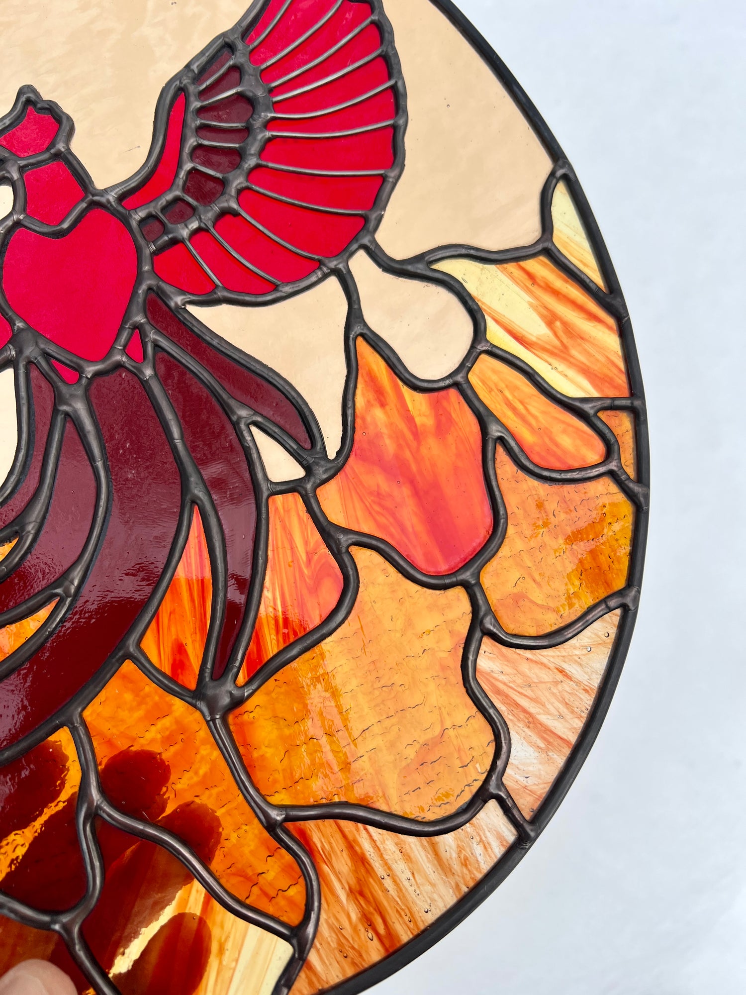 stained glass / lead tin solder / lead came / black patina / wire details / zinc chain