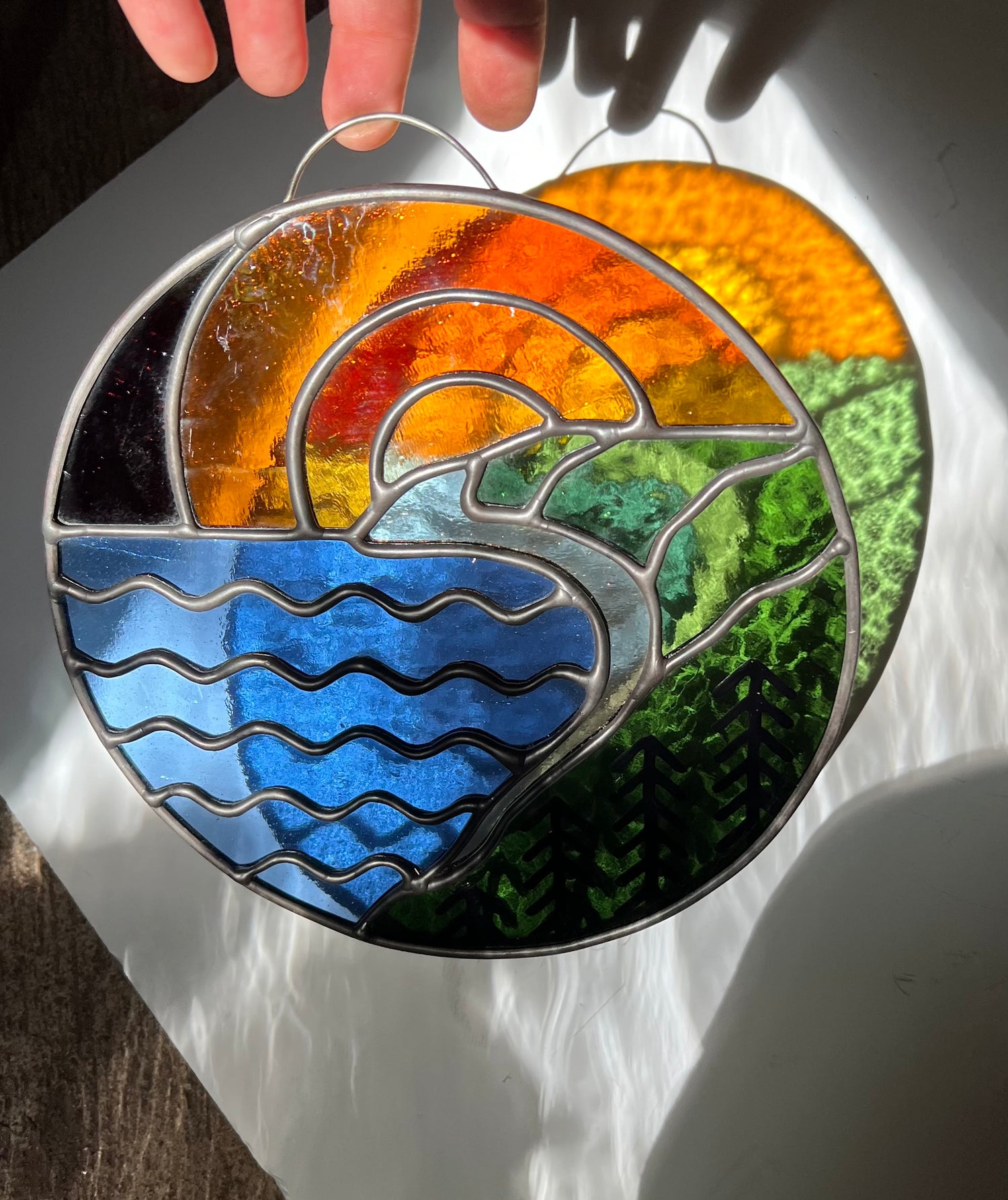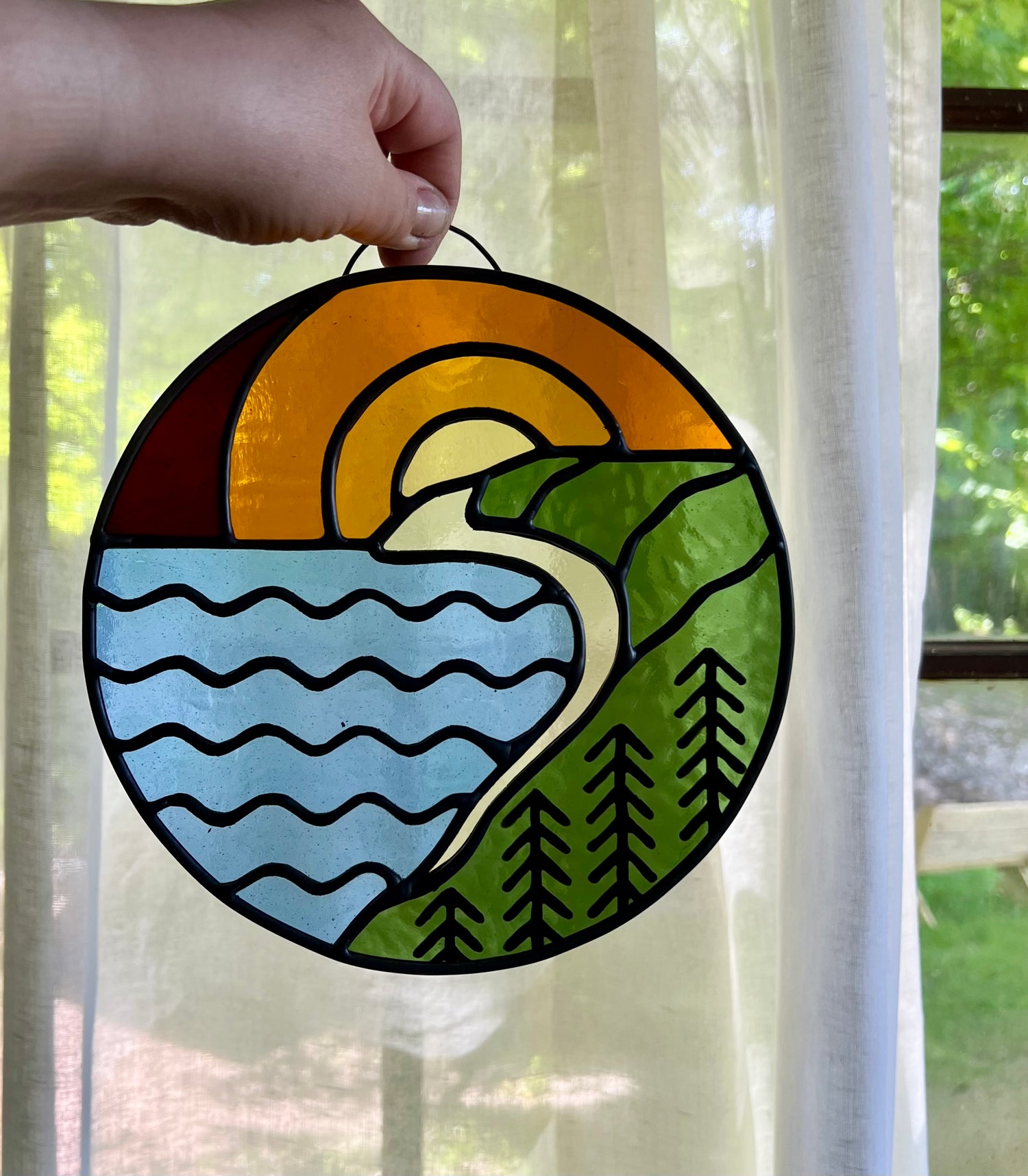lead tin solder / stained glass / hand painted details / lead frame / black patina