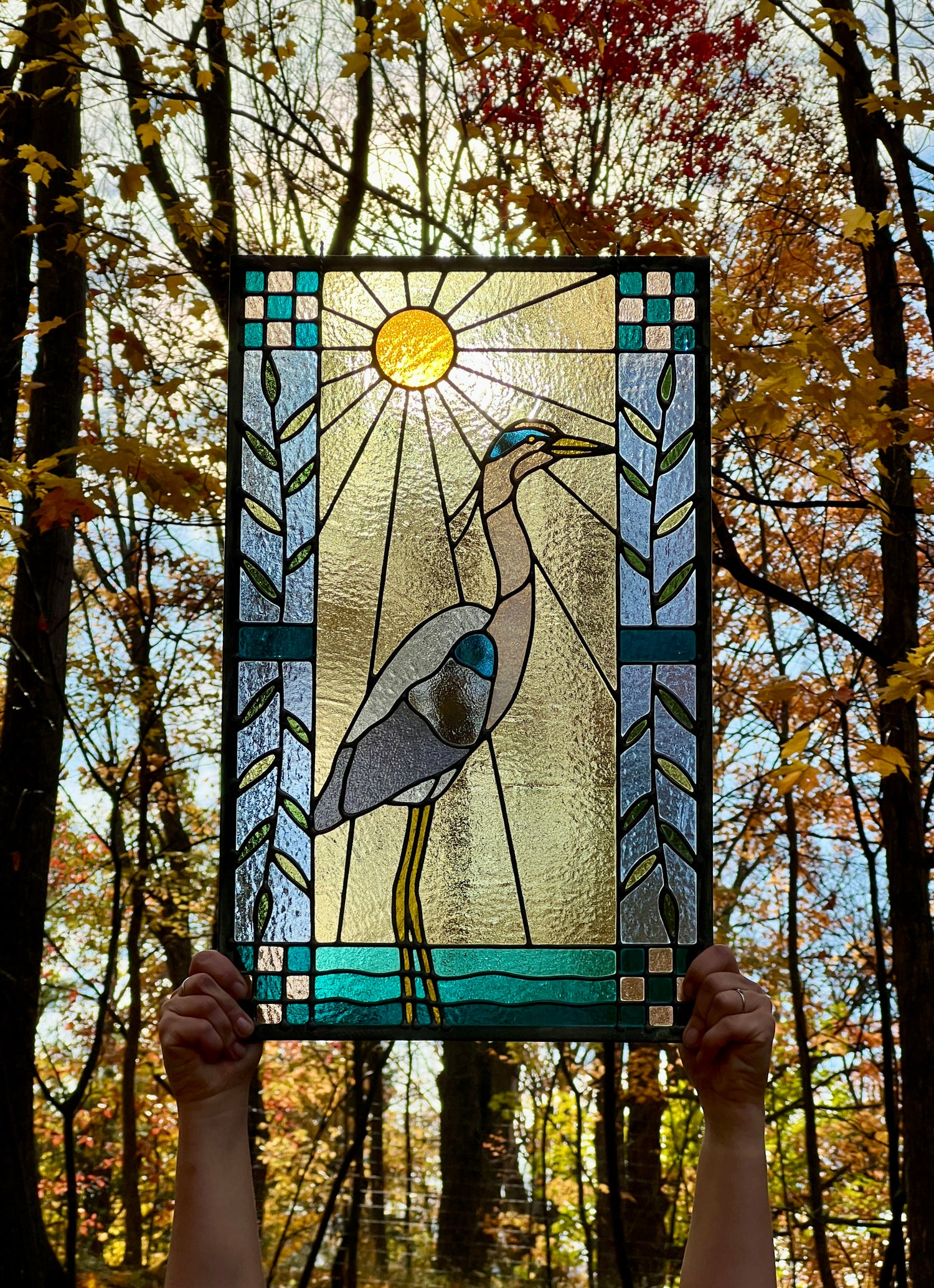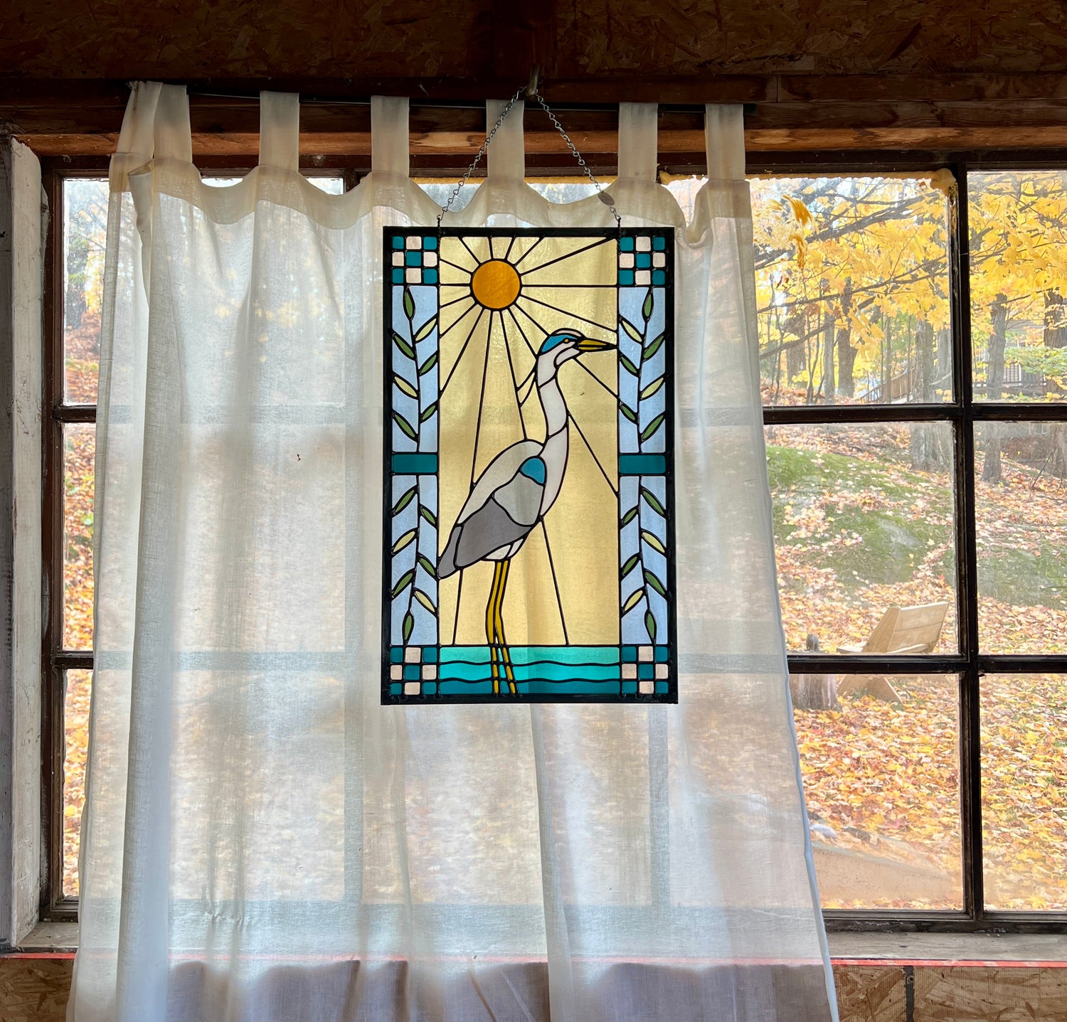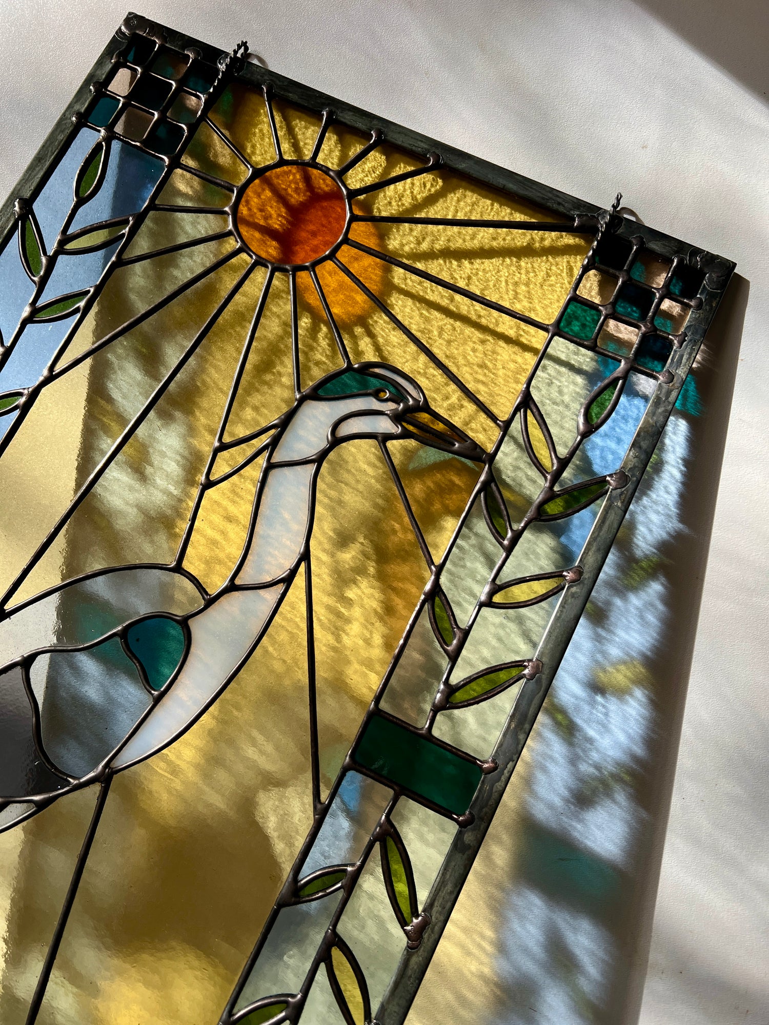 stained glass / lead tin solder / zinc came / black patina / zinc chain