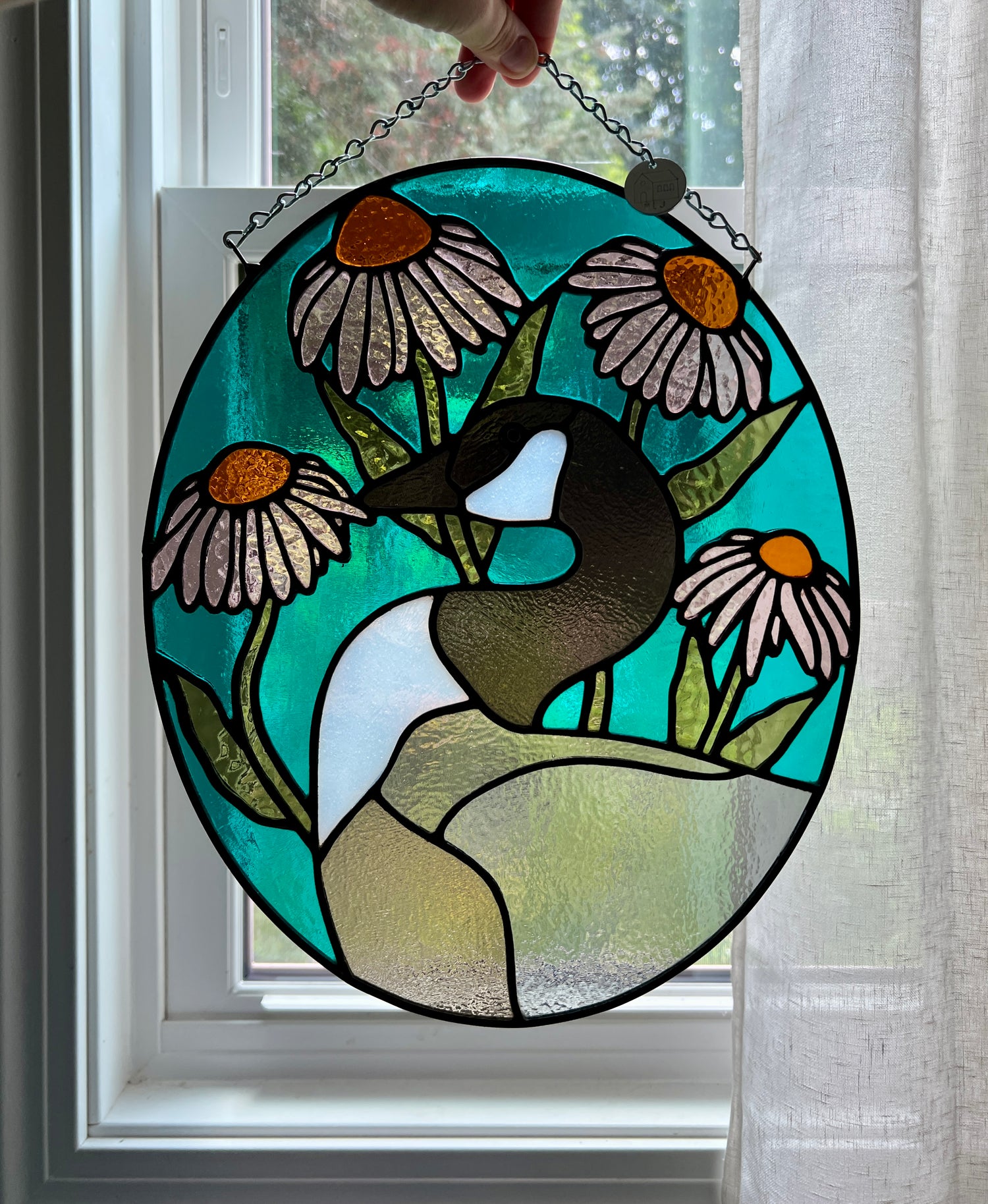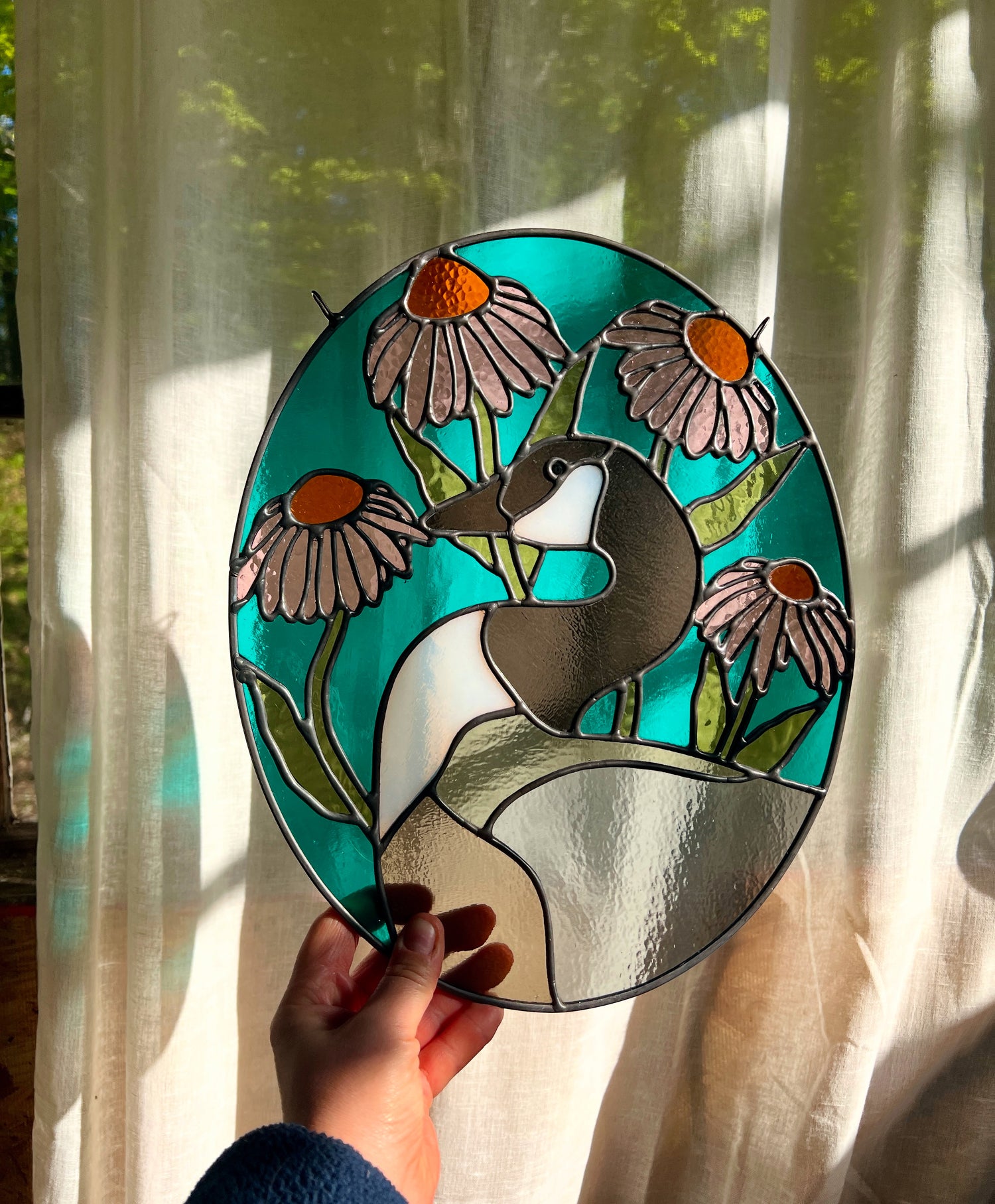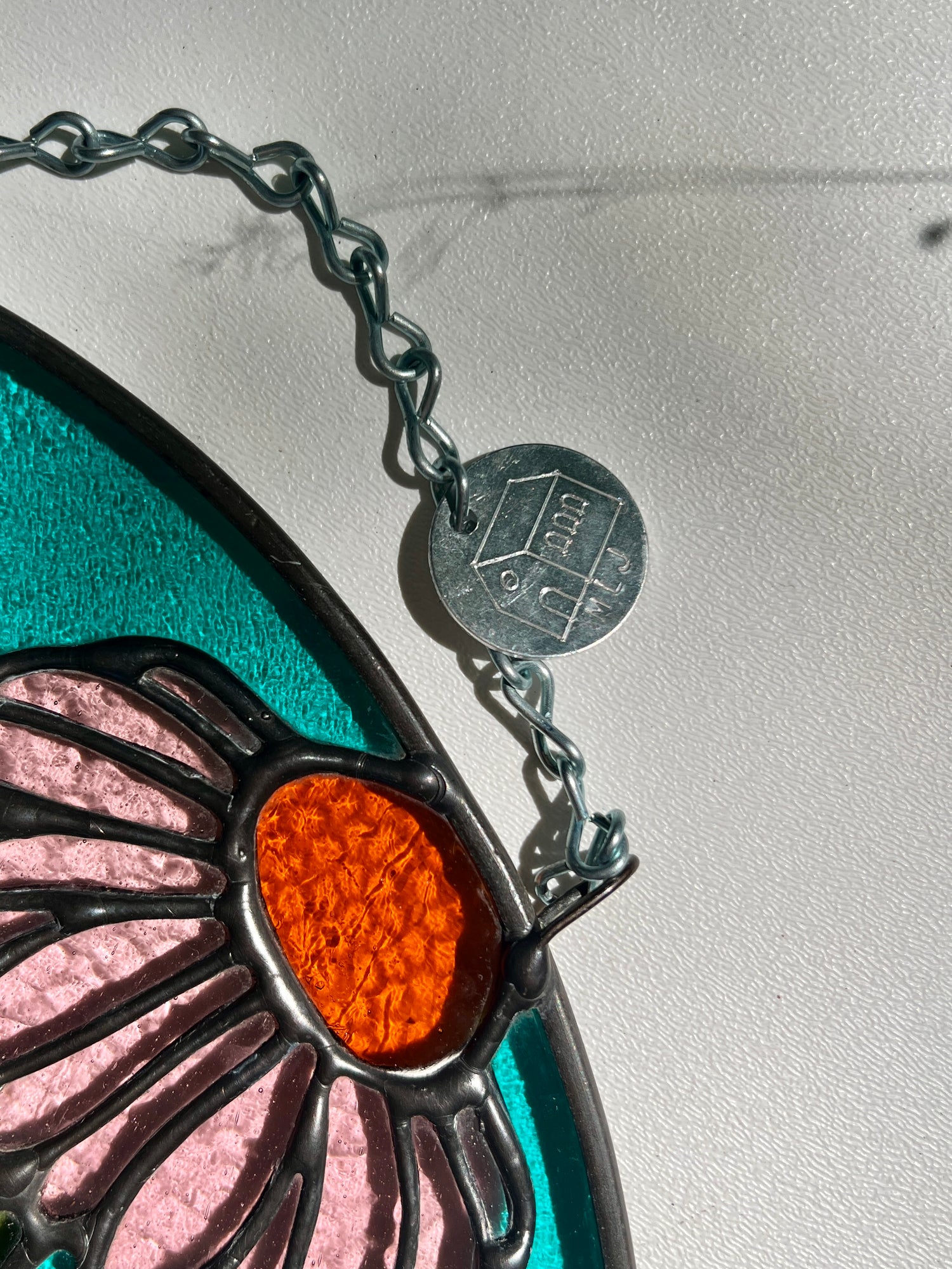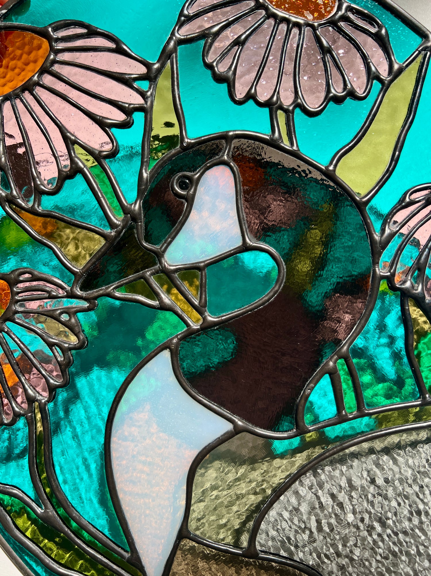 stained glass / lead tin solder / lead came / black patina / zinc chain