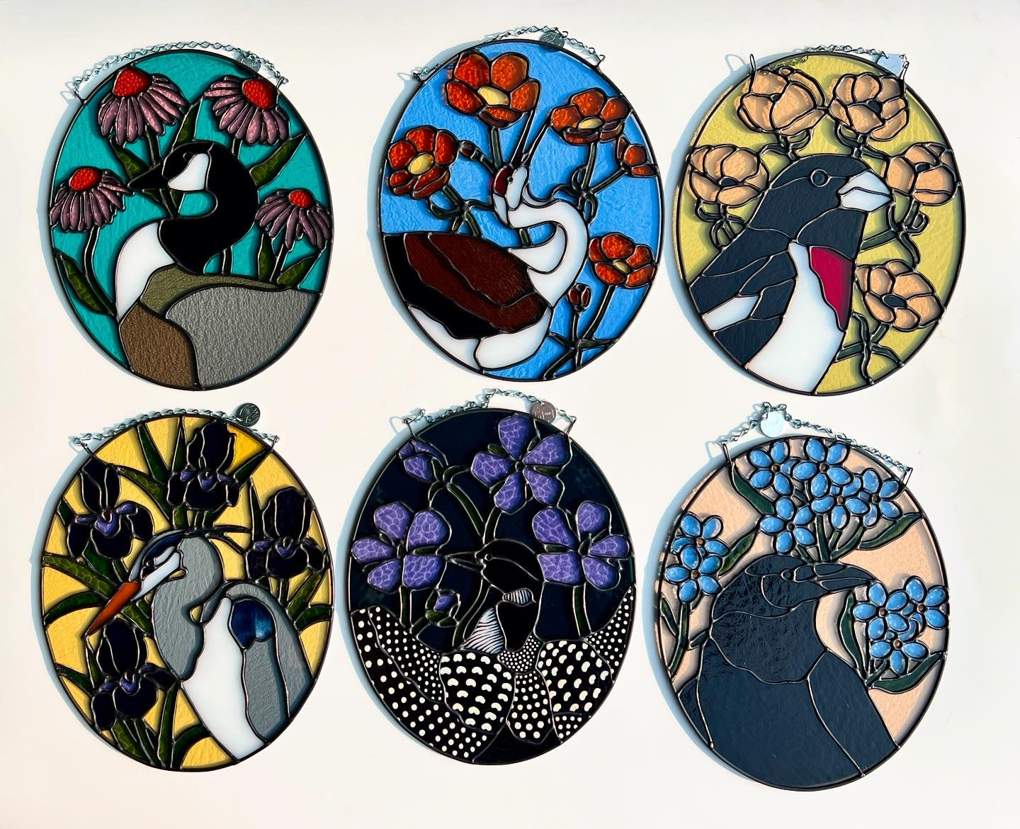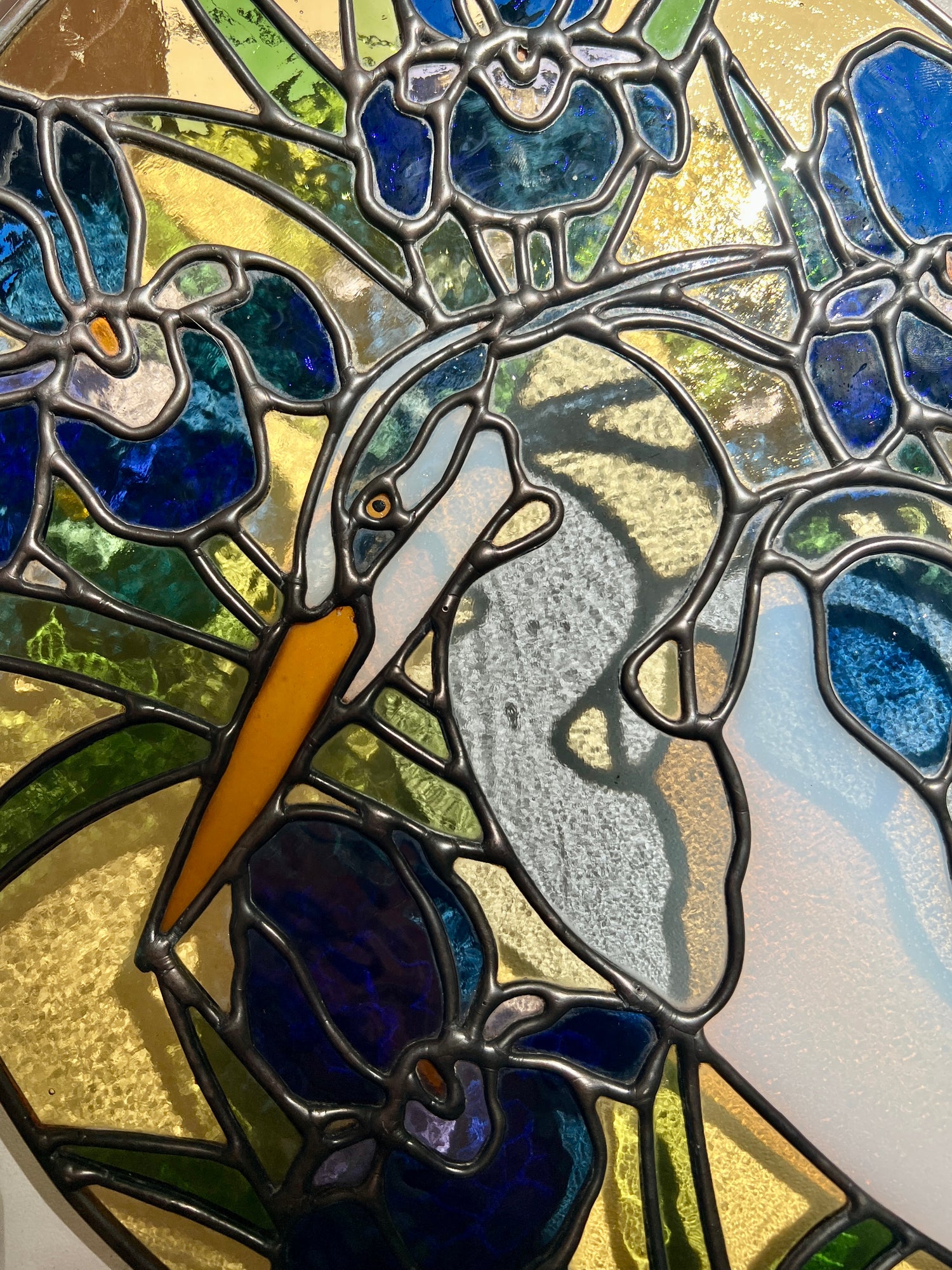 stained glass / lead tin solder / lead came / black patina / zinc chain