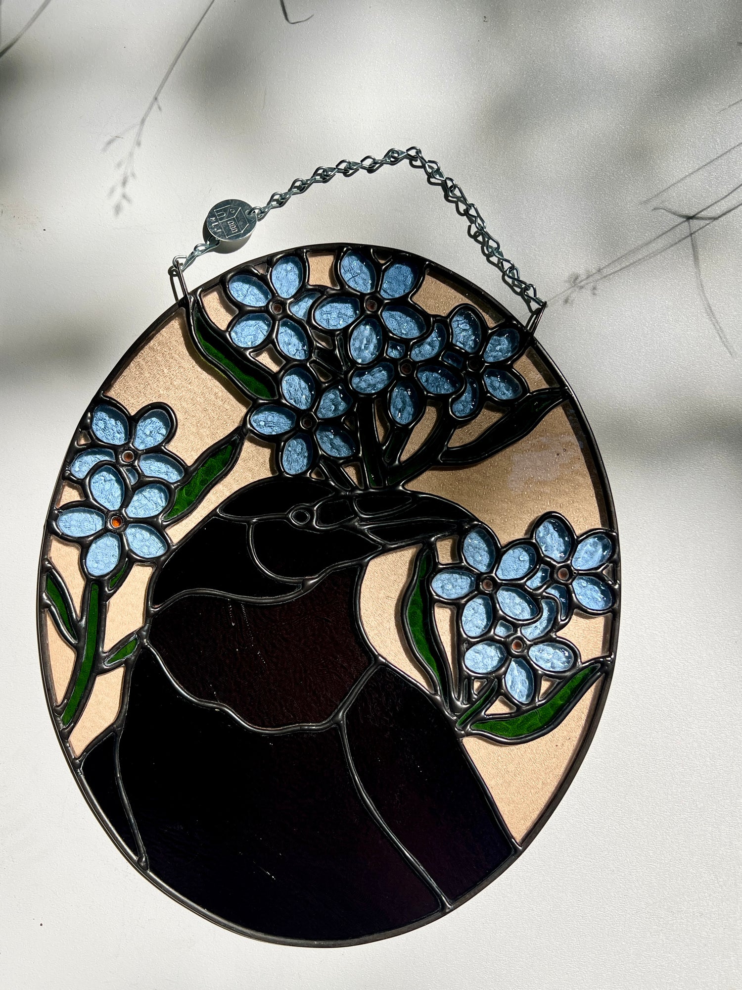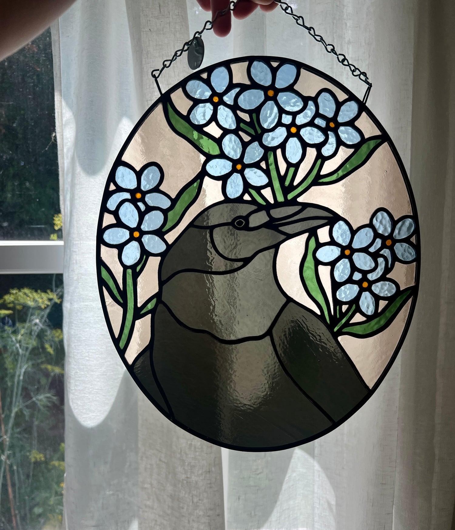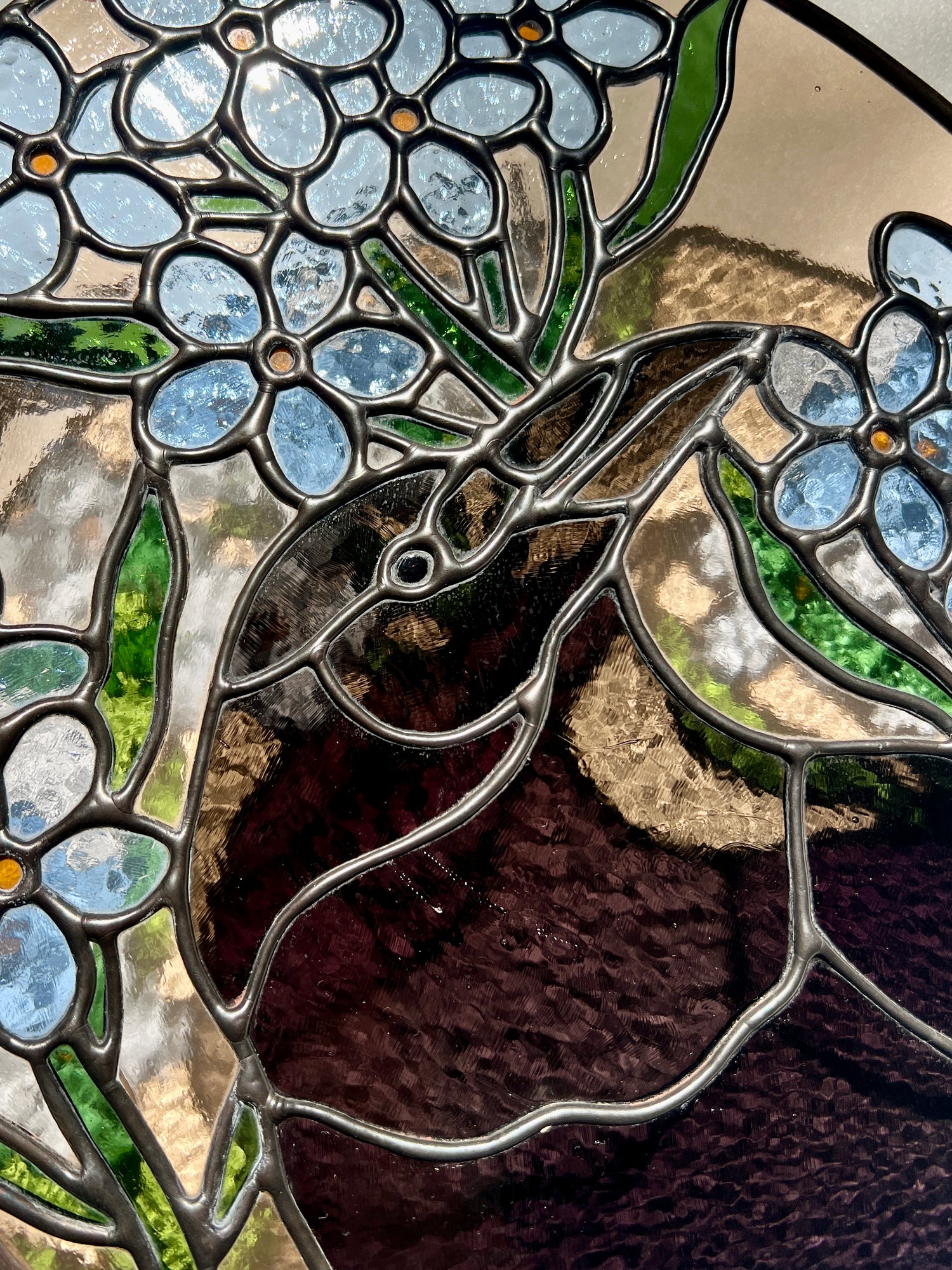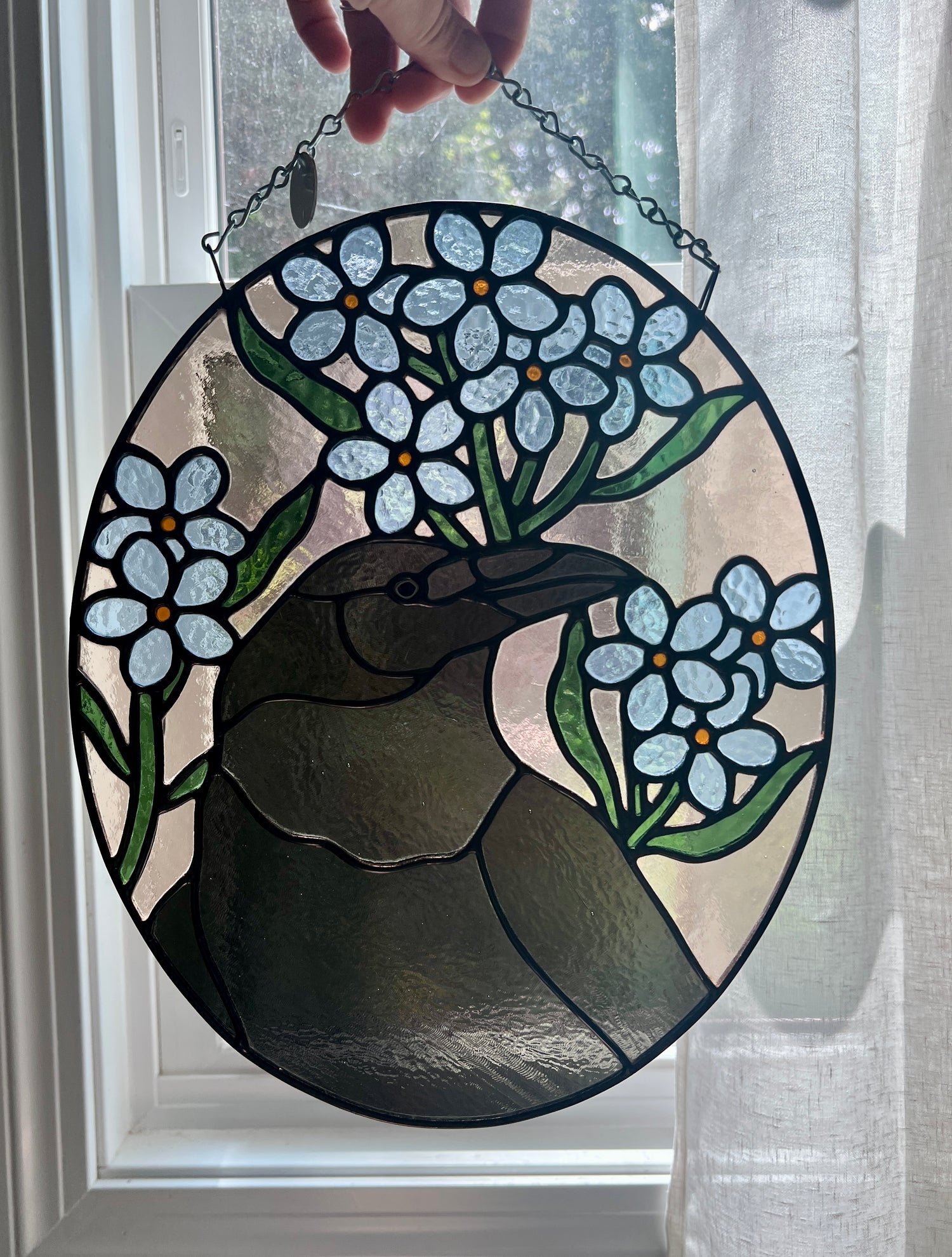 stained glass / lead tin solder / lead came / black patina / zinc chain