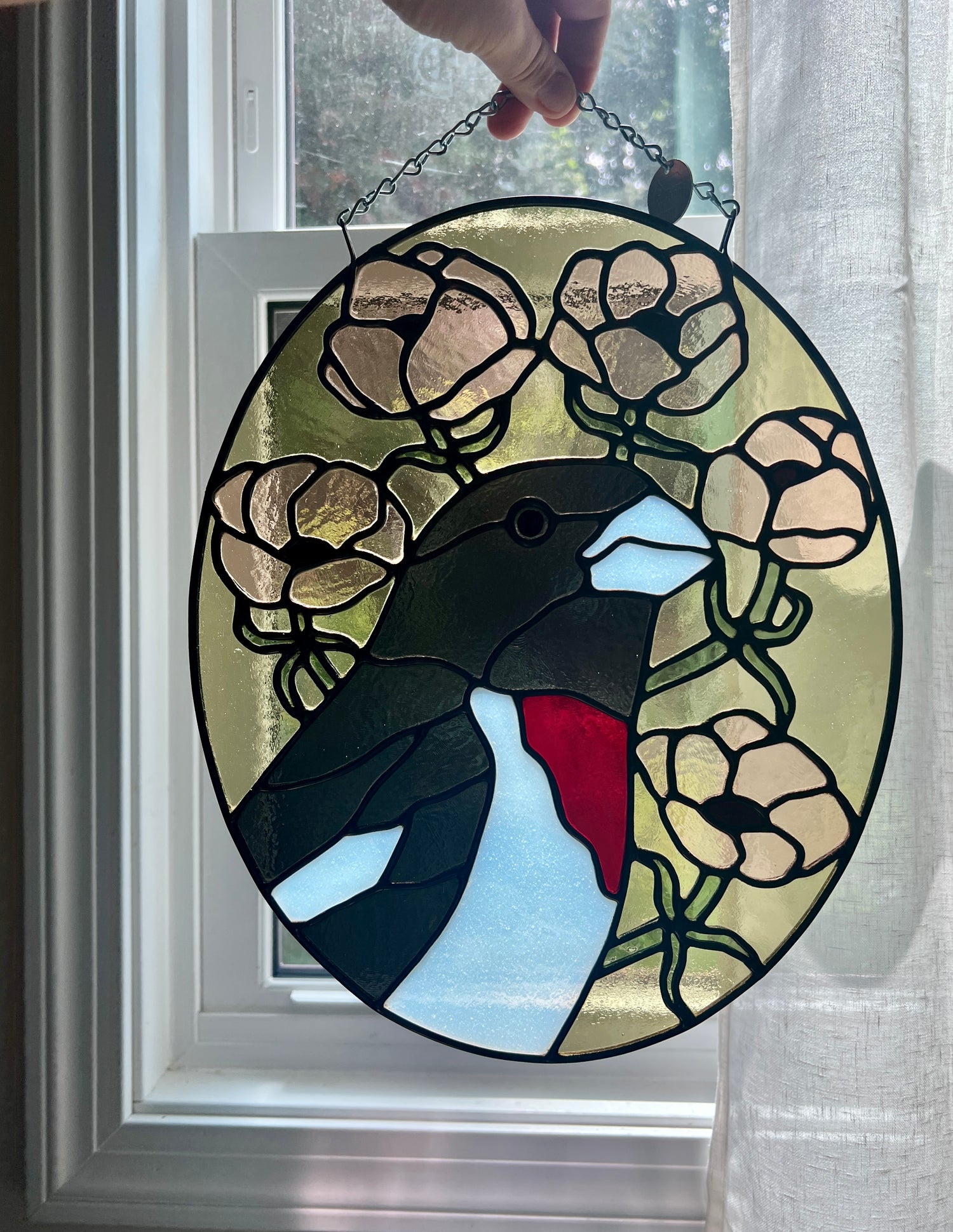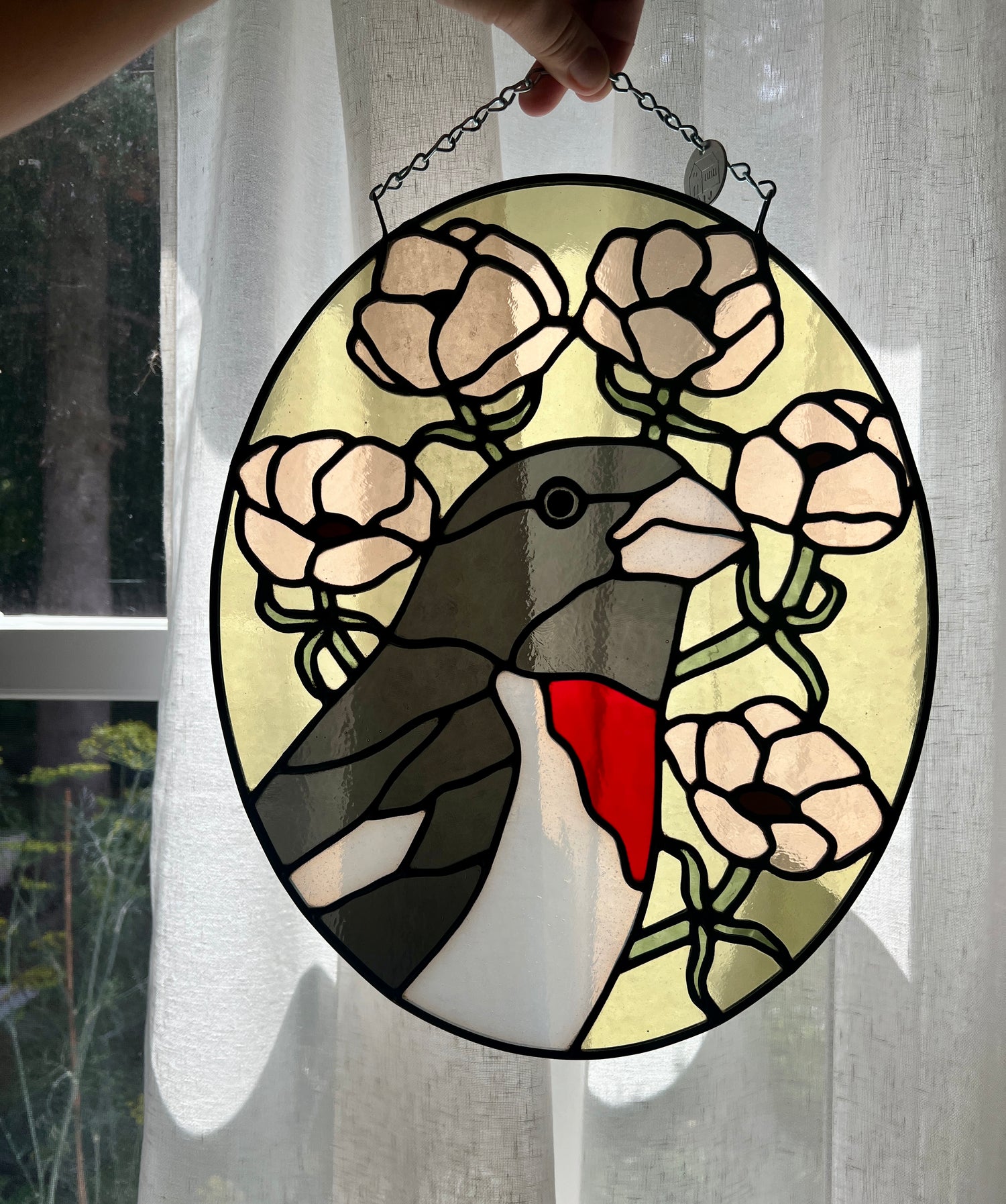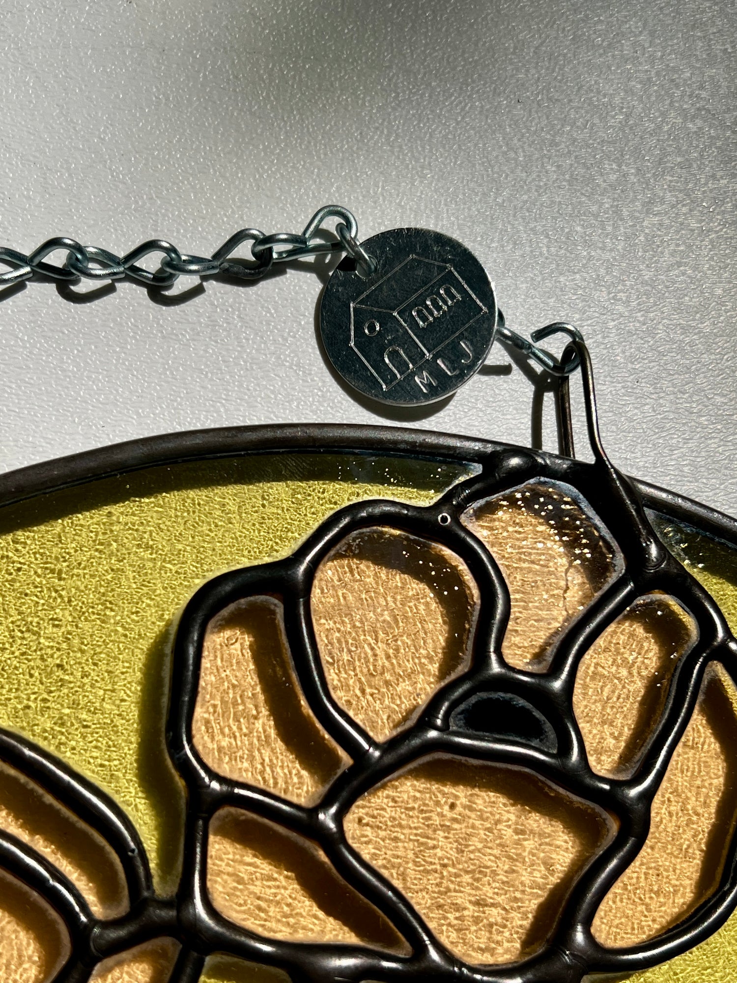 stained glass / lead tin solder / lead came / black patina / zinc chain