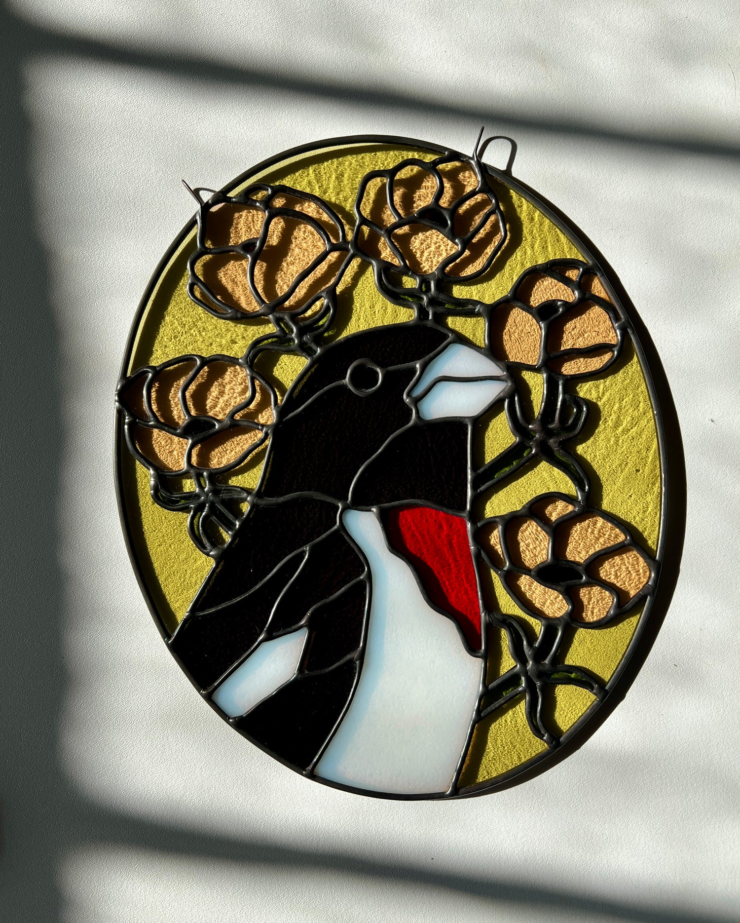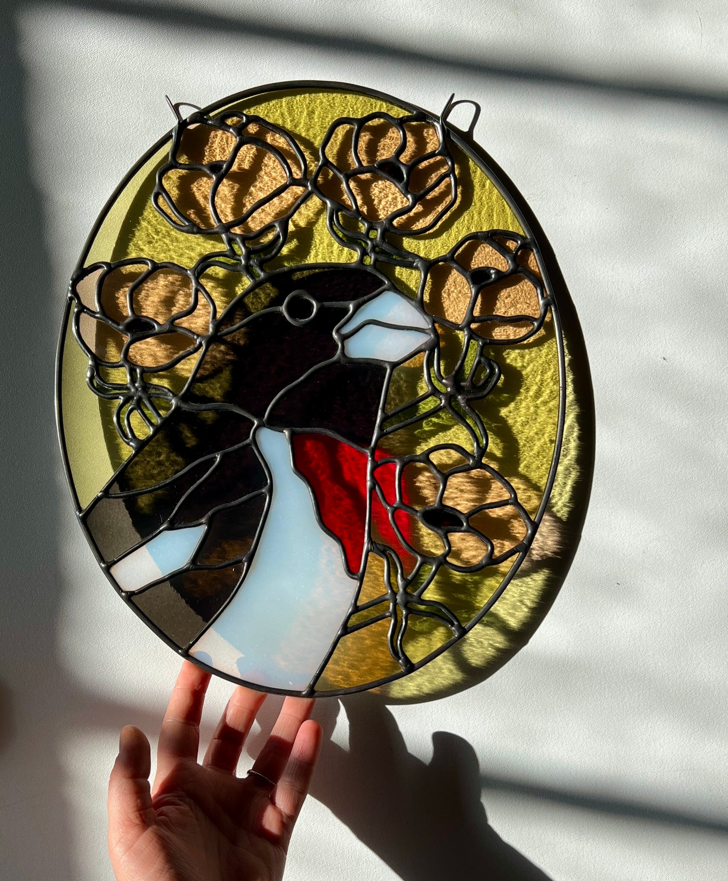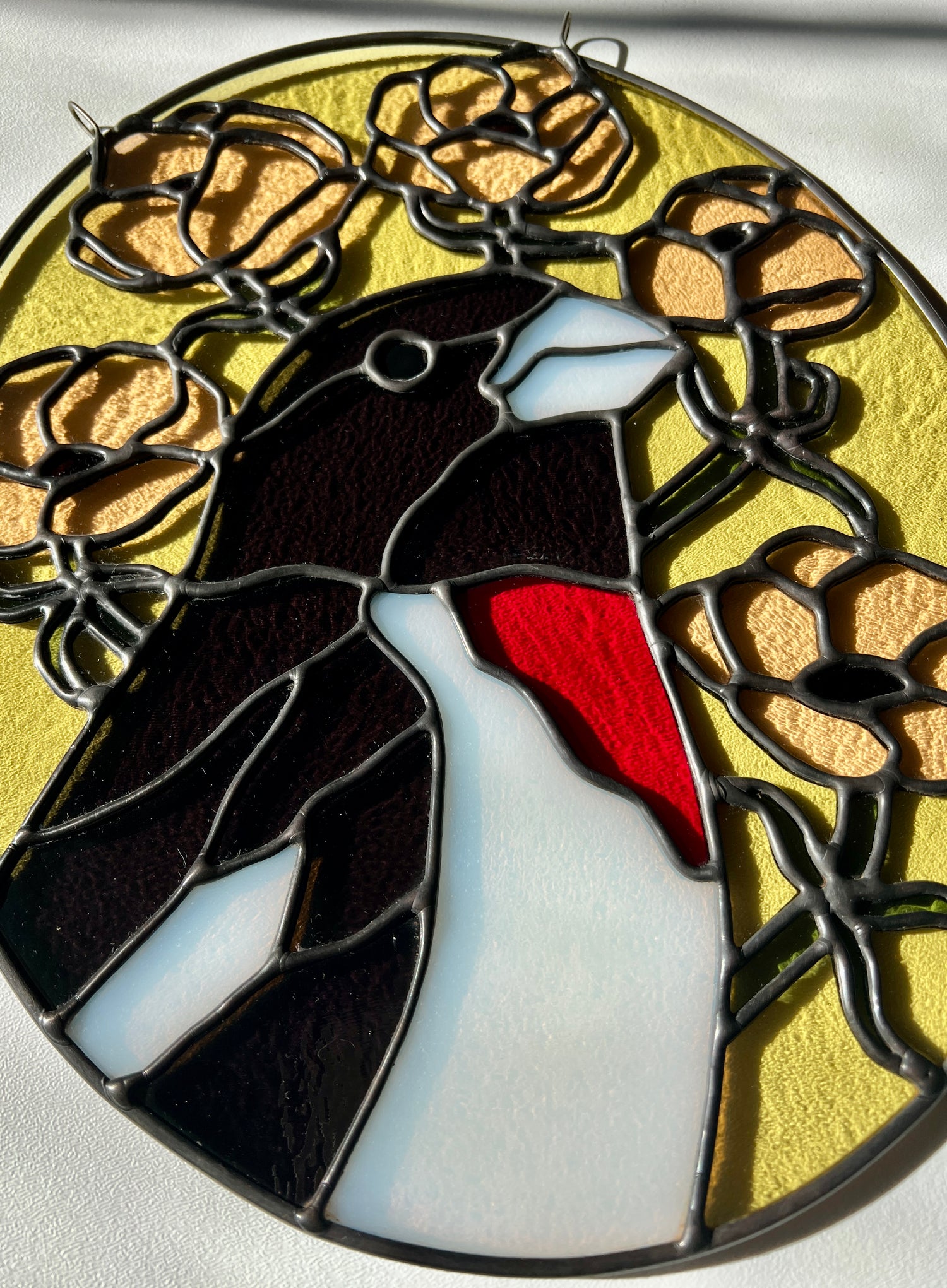 stained glass / lead tin solder / lead came / black patina / zinc chain