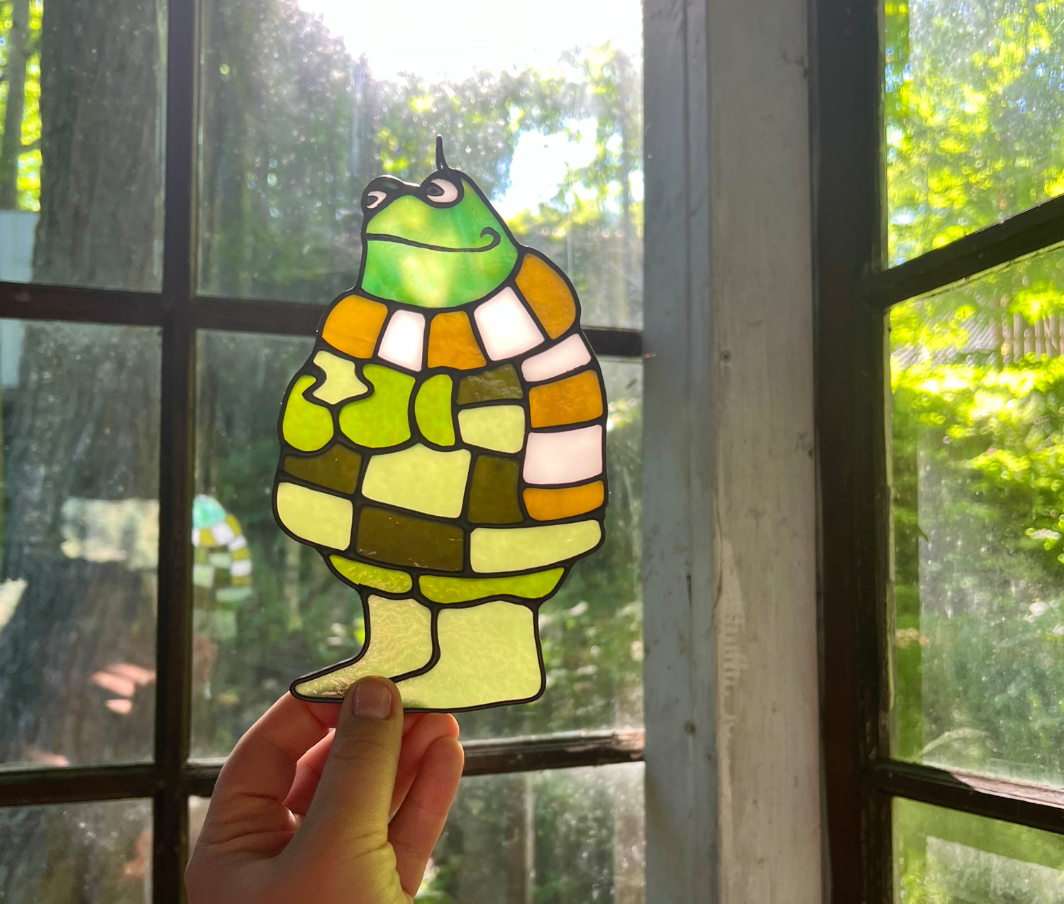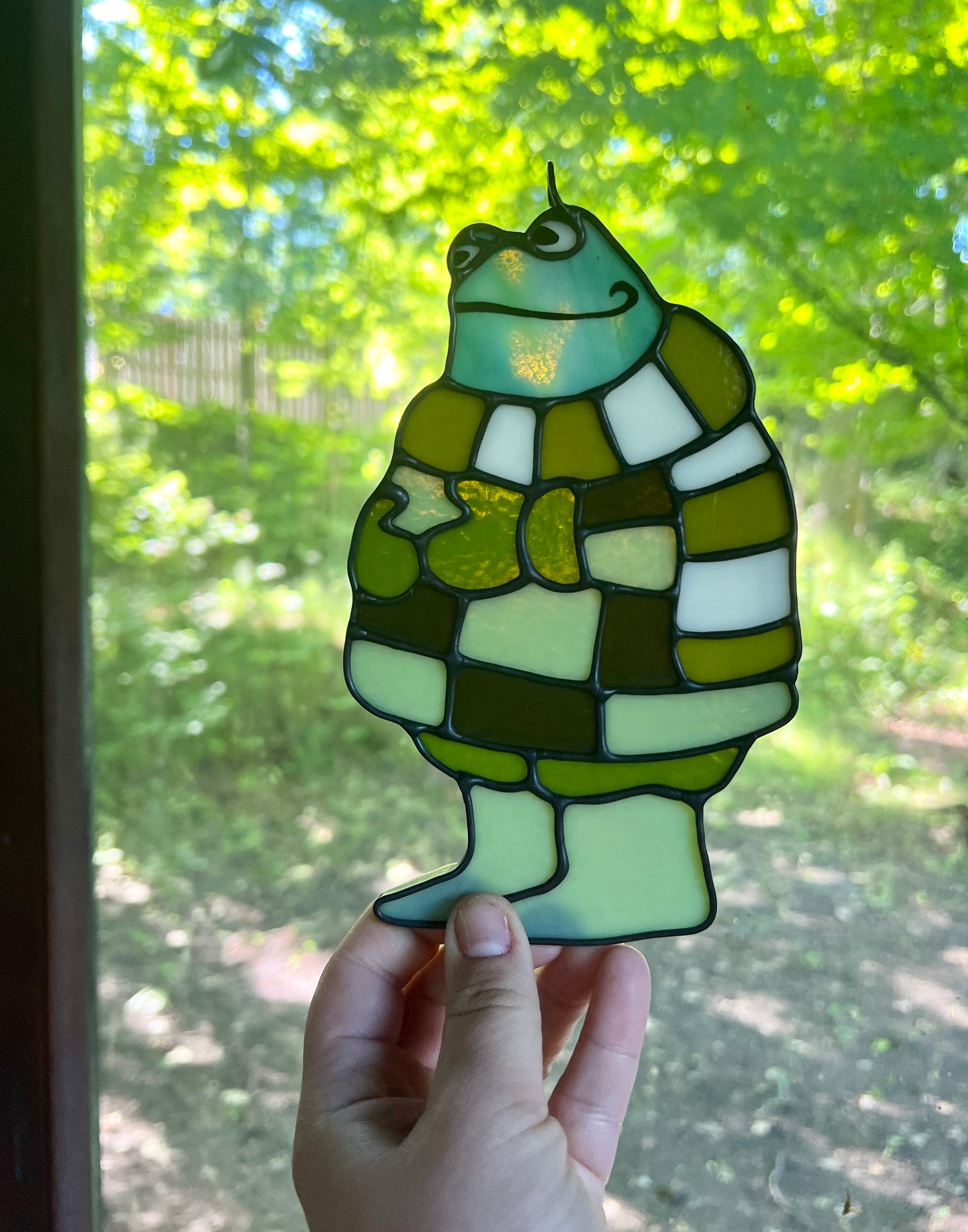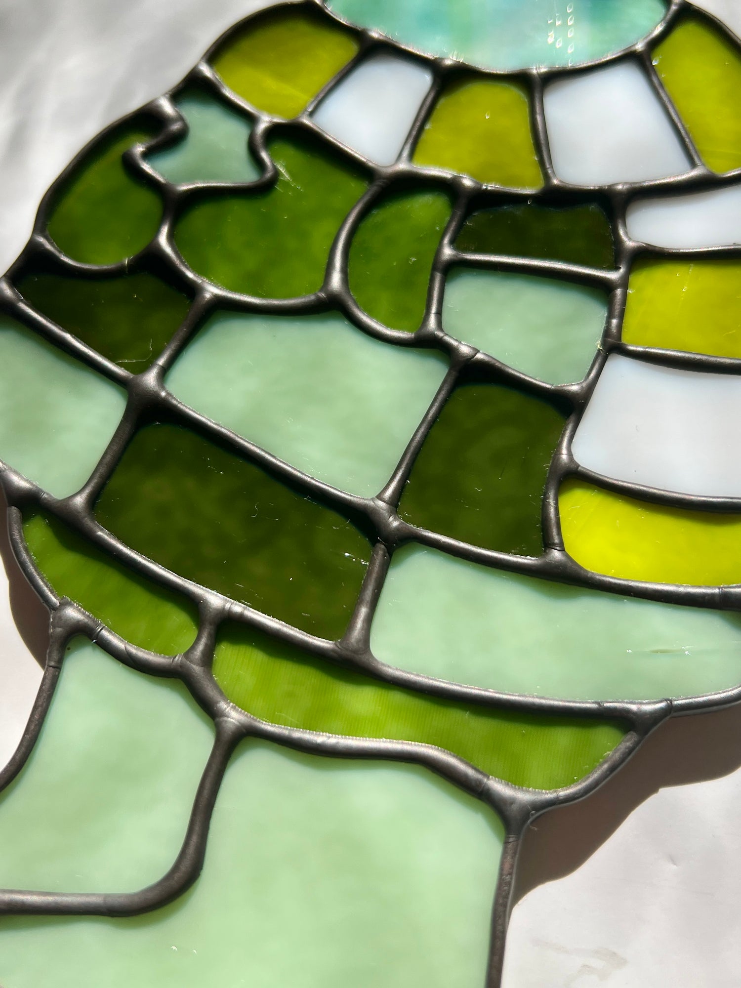 lead tin solder / stained glass / lead frame / black patina / hand painted details